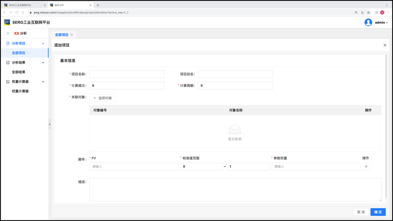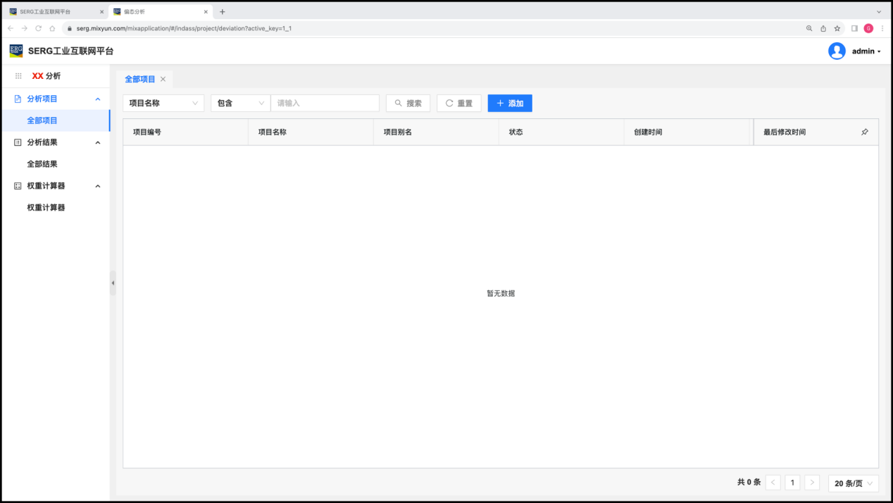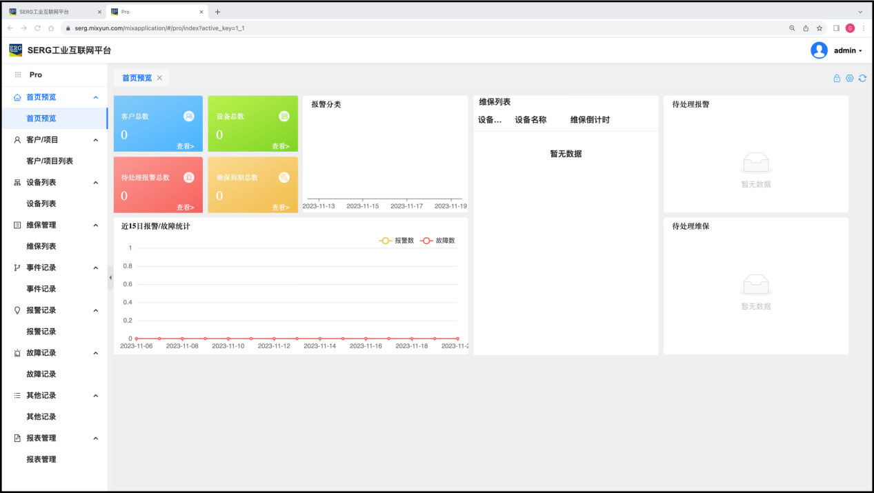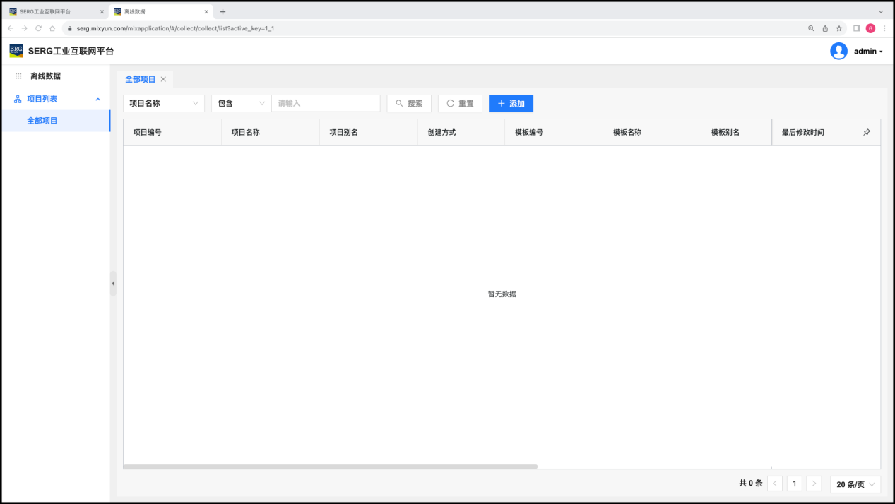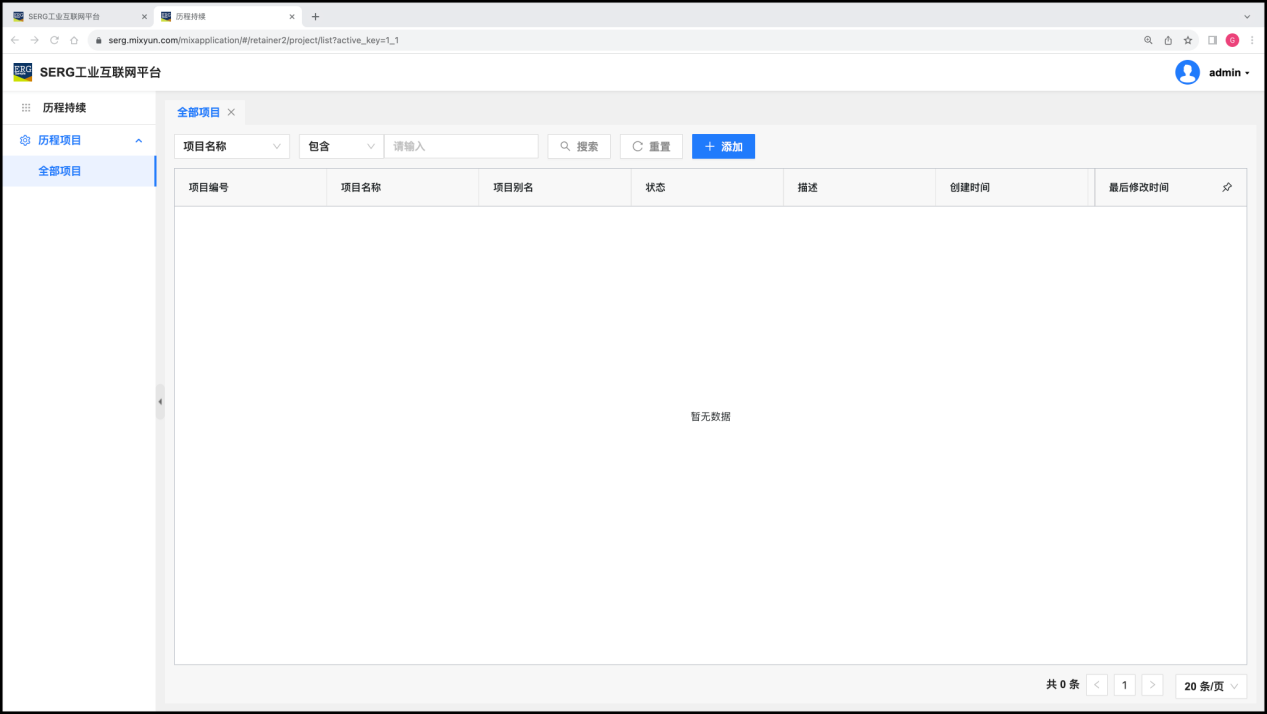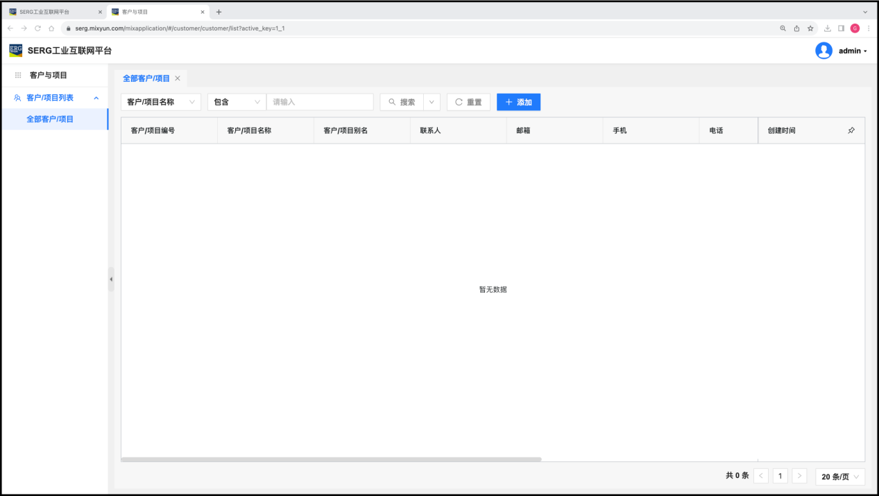 超级管理员(admin)需要使用 “客户与项目” 应用,来对 “客户” 或者 “项目” 进行预先的登记。这也是工业互联网项目落地实施规划中的一个重要的环节。