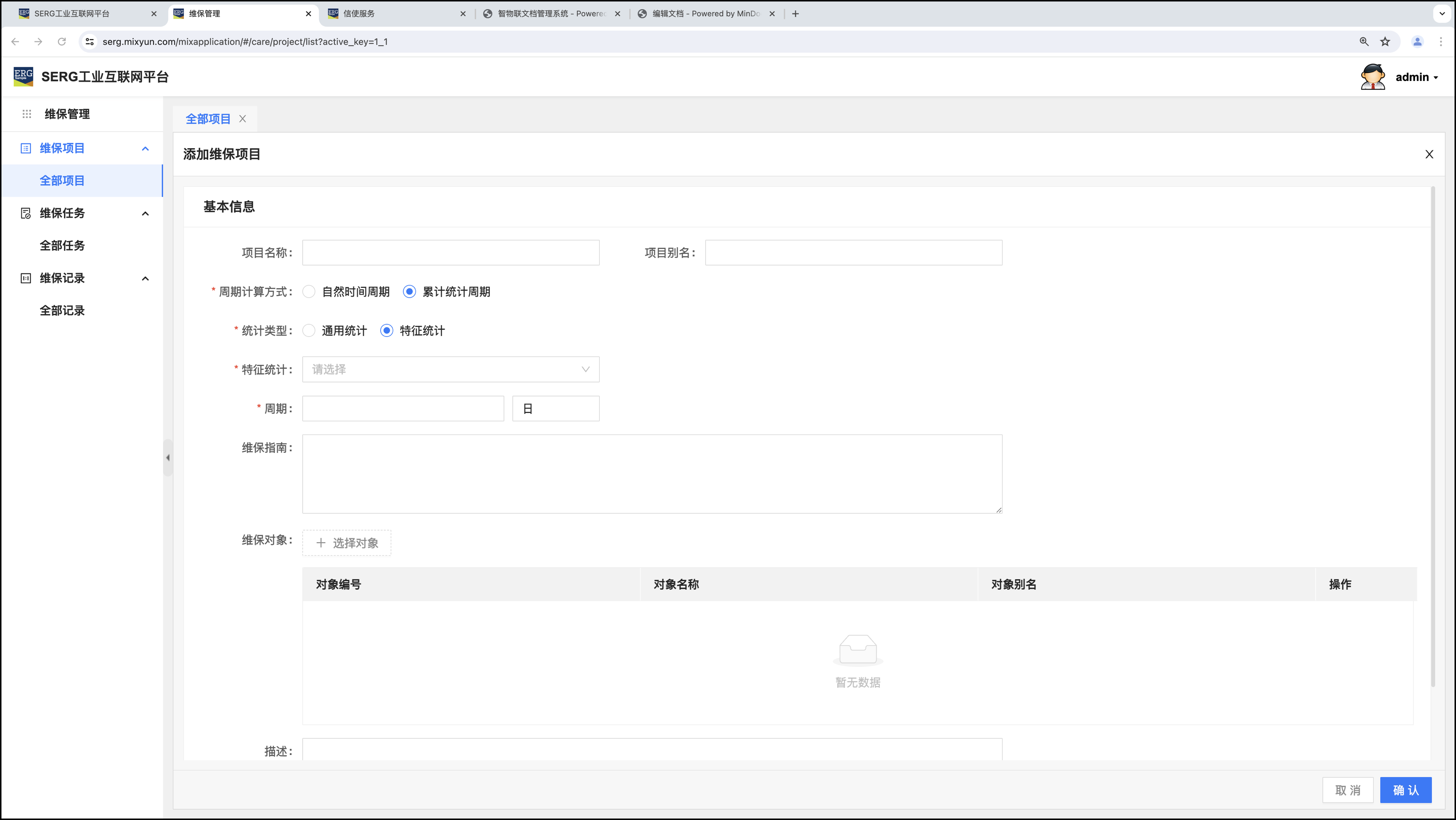 “对象管理” 应用是用来生成和管理 MixIOT 对象的,它是整个 MixIOT 体系的基础,因为 MixIOT 的所有内容(数据、信息)都是基于 MixIOT 对象的。也就是说,我们所说的 “统计计算” 一定是某个对象的 “统计计算”、“报表” 一定是某个对象的报表、“特征” 一定是某个对象的特征等等。