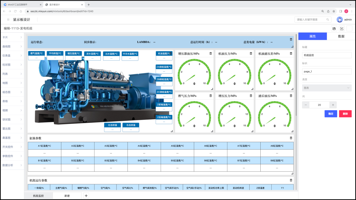 显示板设计工具提供了丰富的设计元素,可以在设计画布上通过拖拽的方法布局到设计画布上,经过元素属性的配置,就可以用恰当的设计元素来展现对应的参数数据。