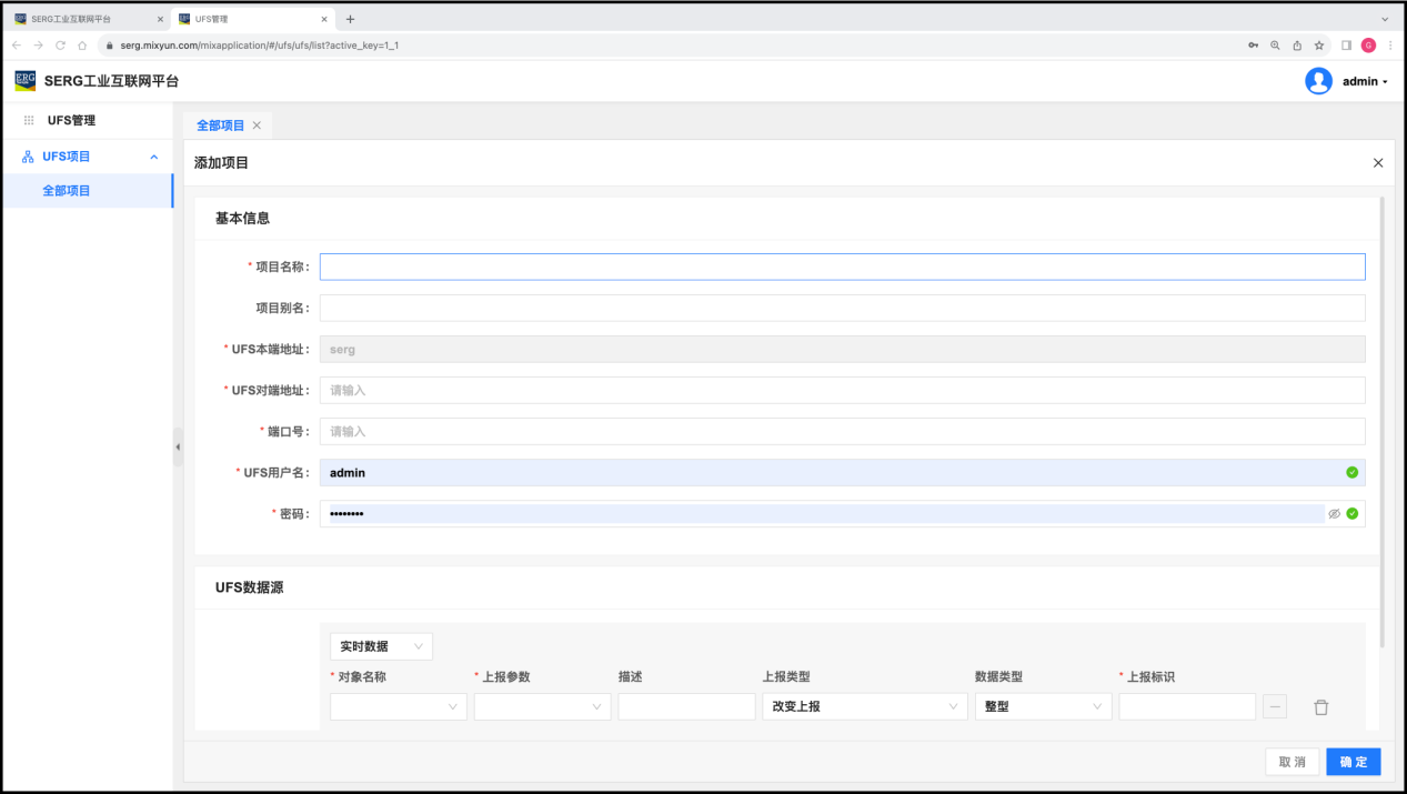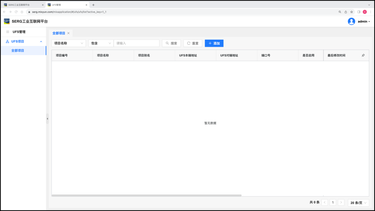 “UFS管理” 应用的作用是管理 MixIOT 平台中的 UFS项目。