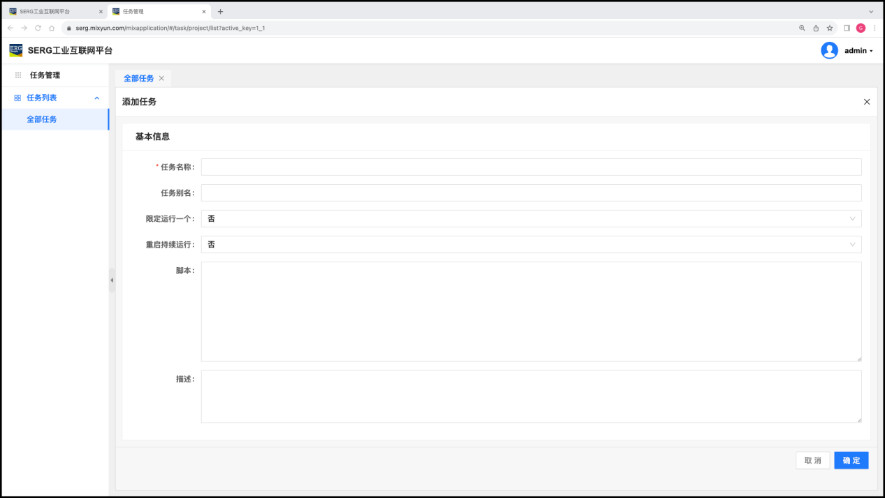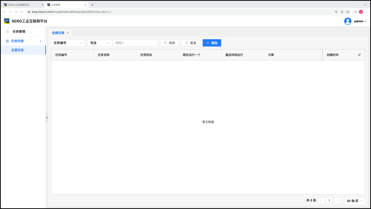 “任务管理” 应用是专门用来管理MixIOT平台系统中“任务”的地方。
