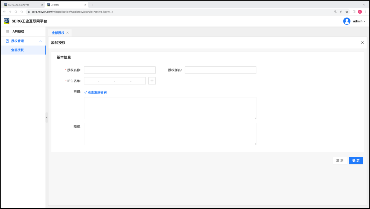 “API管理” 应用是专门用于 MixIOT 体系外第三方IT系统交互的访问授权。