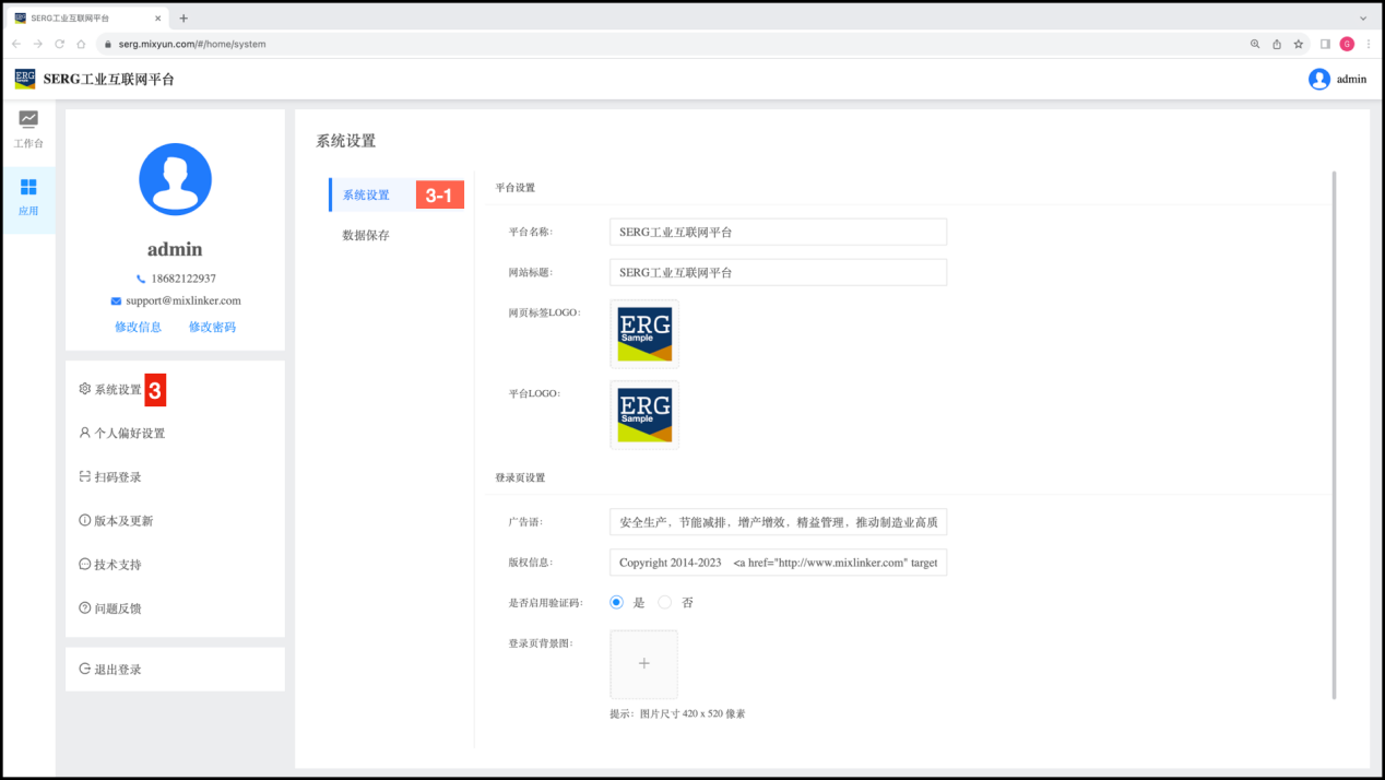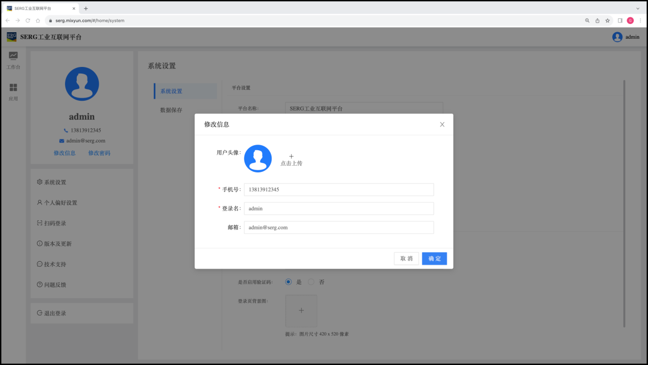a)可以进行平台的相关设置。主要是工业互联网平台网站的名称和图标、广告语以及版权信息的设置等等。