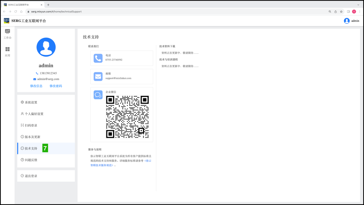 这里可以看到 Mixiot 的技术支持方式,包括技术支持企业微信,以及技术支持相关的电话和邮件。