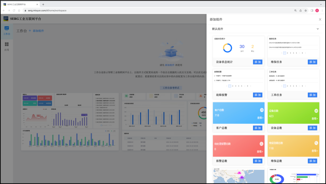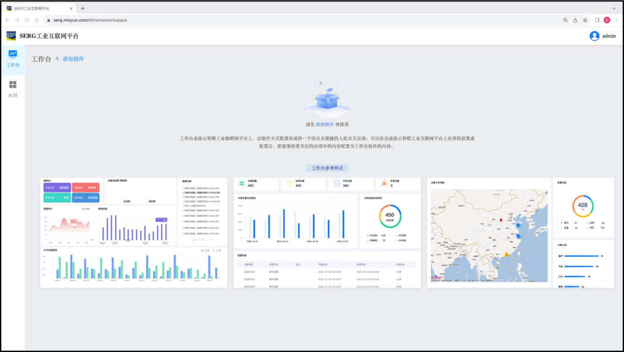 MixIOT 体系未来会针对各种不同行业、不同领域以及不同用户角色的关注、使用习惯和需求,提供—些成熟的工作台样式模板供用户整体选择,提高工作台的配置效率。