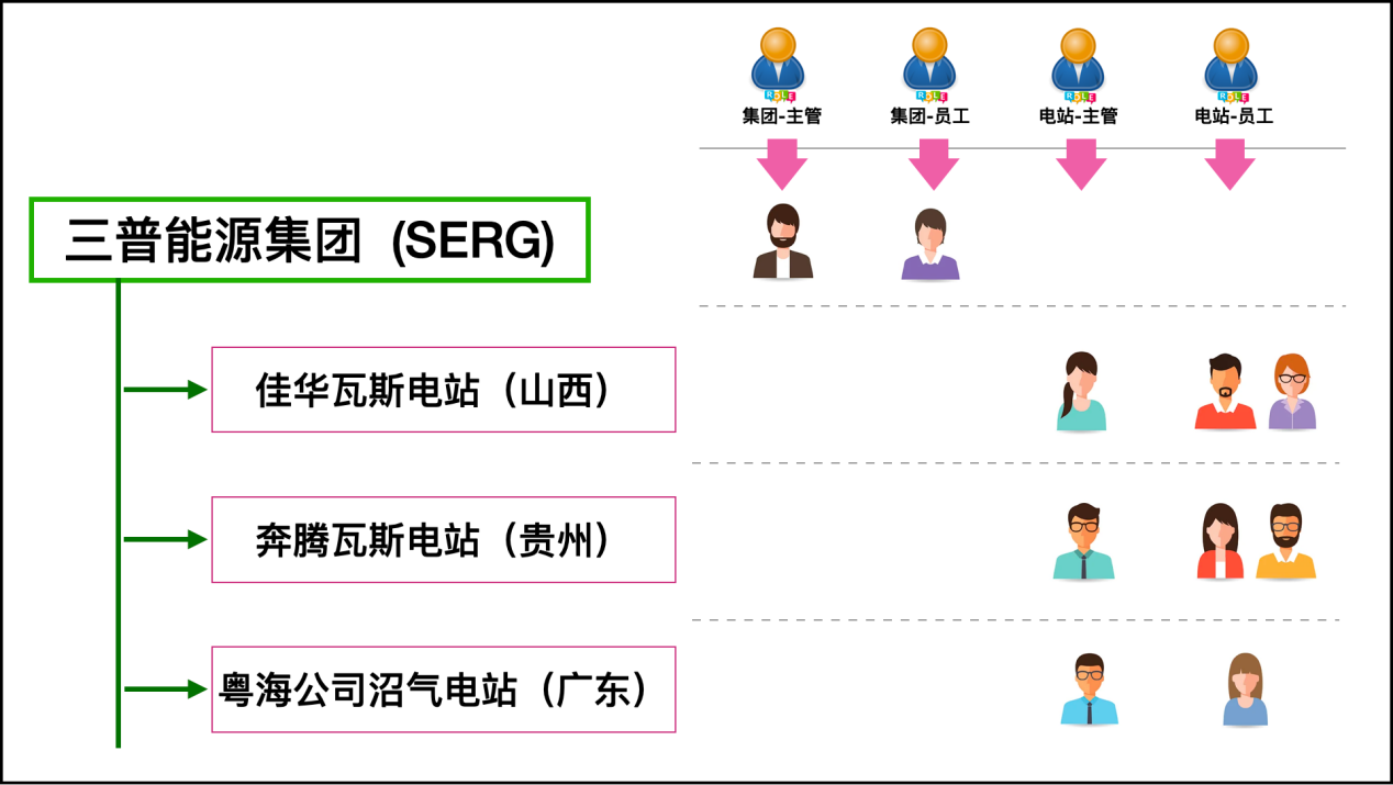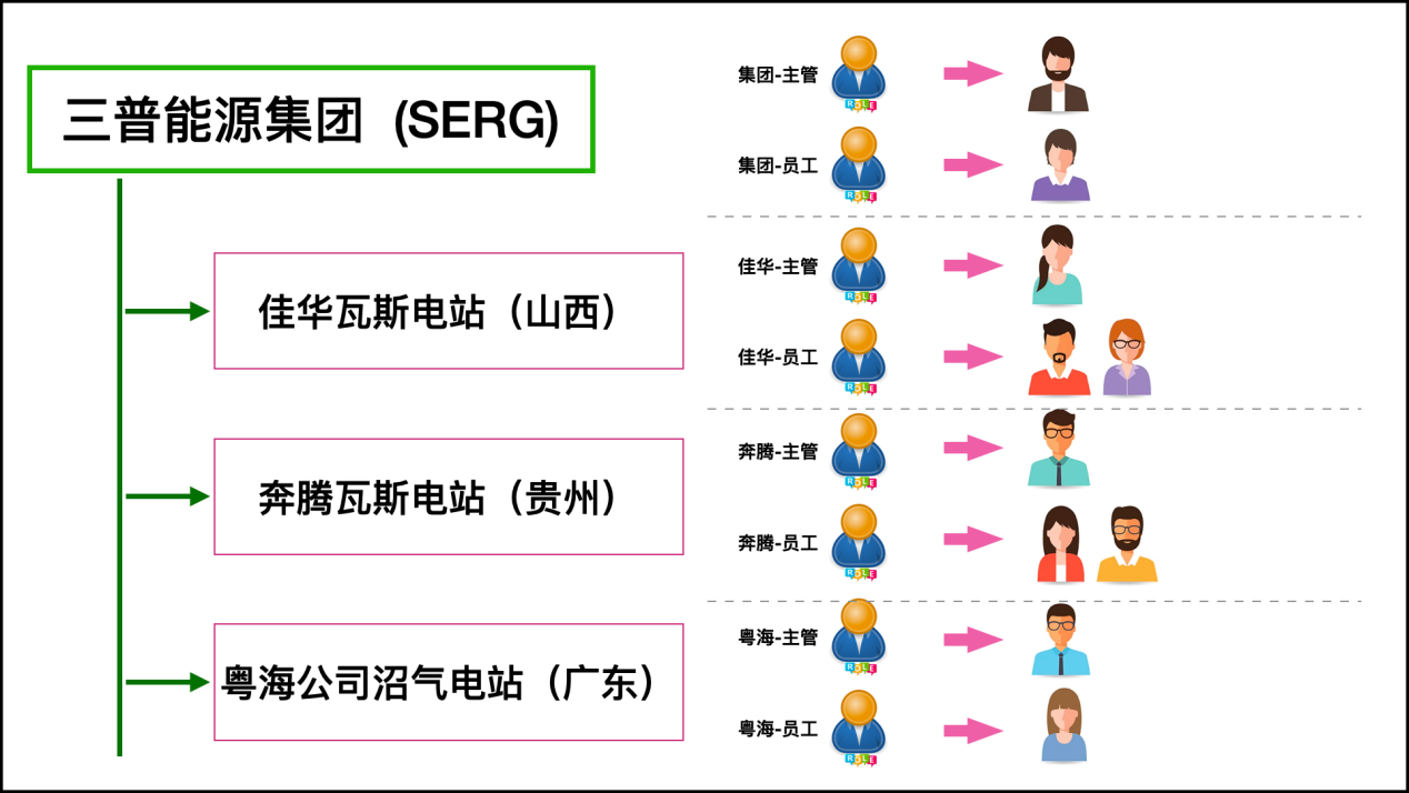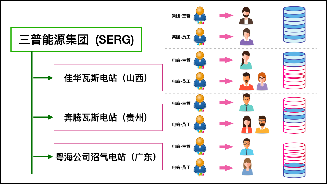 方案三是在方案二基础上的优化,如下图所示。在这个角色的规划之下,只需要从数据上区分,各电站的主管和员工,都只授权本电站的数据。