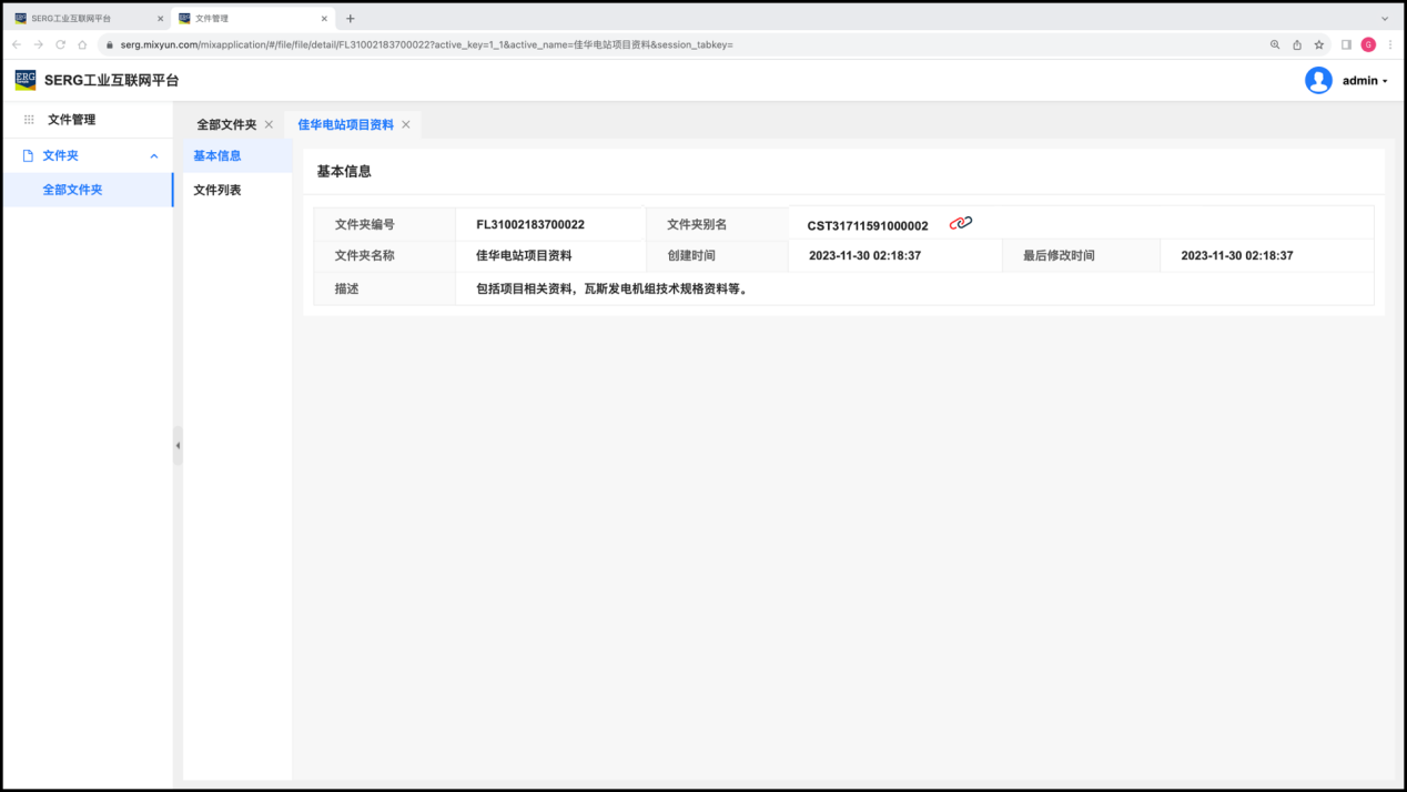 详情中,包括该文件夹的基本信息,以及该文件夹所包含的文件列表: