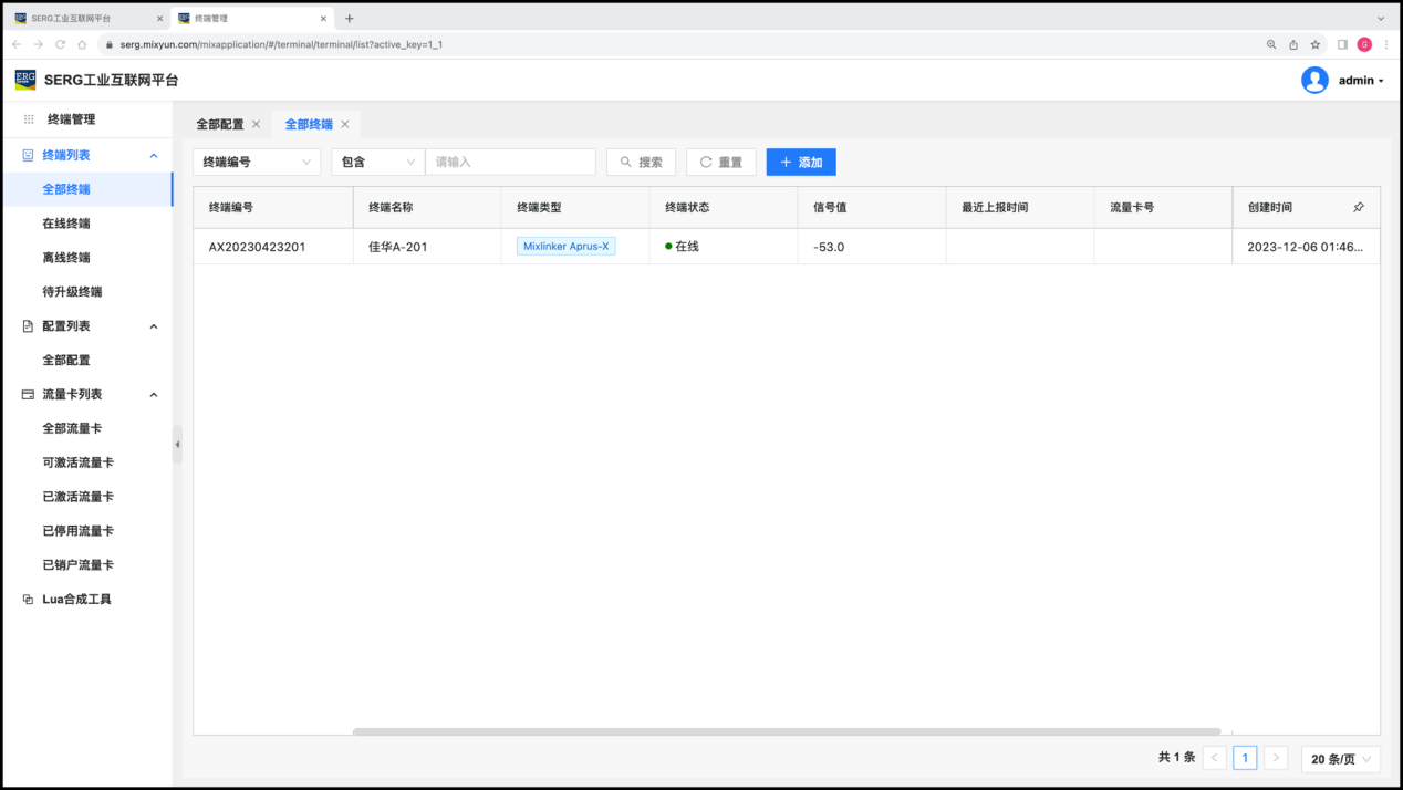 在 “全部终端” 视图列表中,马上就可以看到这些适配器的在线状态。