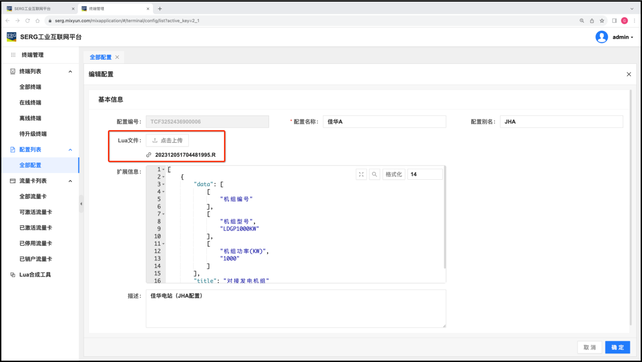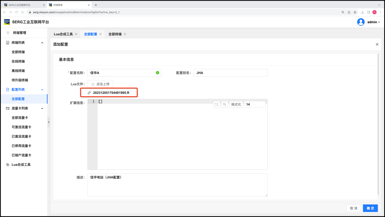 把合并后的Lua文件(terminalConfig_20231205165213.JHA.L.V23070301.R)上传: