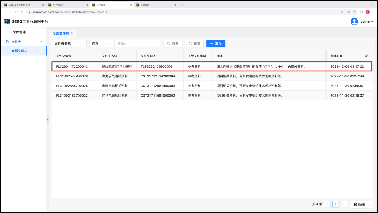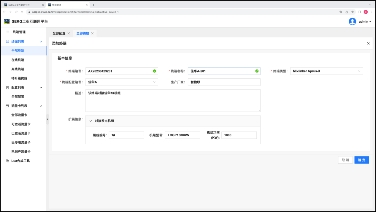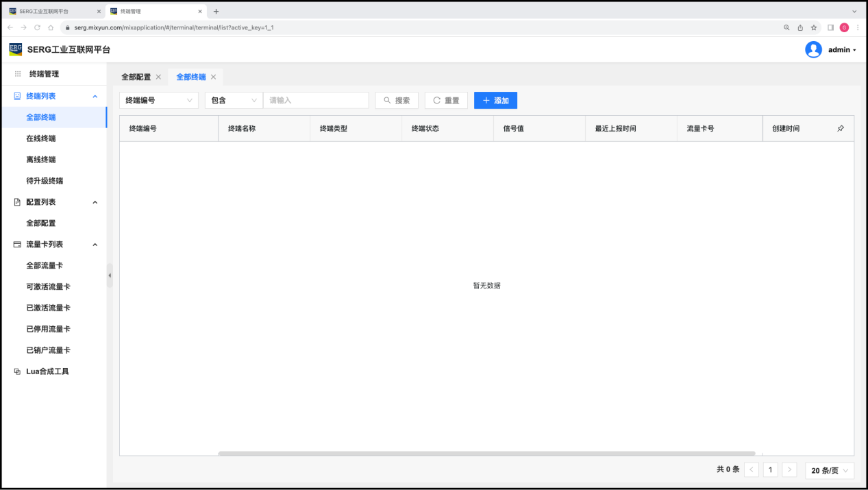 完成了上述的各项准备工作,就可以开始 “终端管理” 应用的各项工作了。我们将在接下来的使用讲解中,以 “三普能源集团工业互联网项目(SERG)”为例来说明。