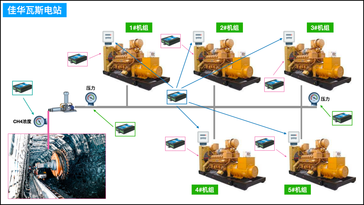 - 有5台完全相同的发电量计量的电表(有供电量表),分别计量每台机组的发电量;