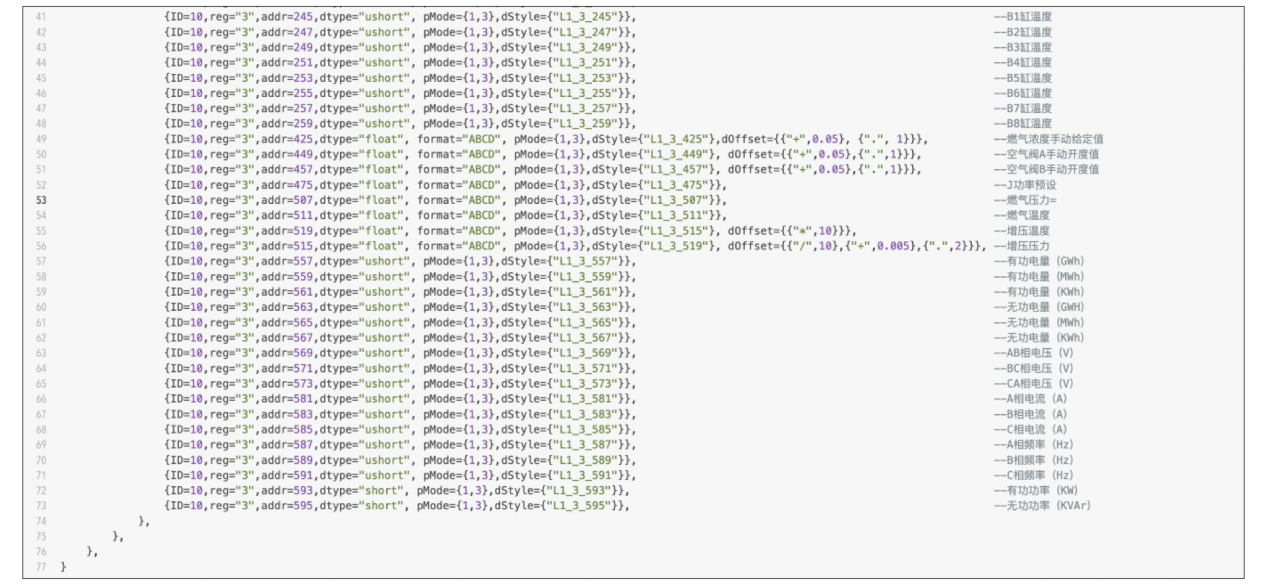 以佳华电站1-5#机组为例,需要获得佳华电站机组的数据表(也称为“PLC点表”)。