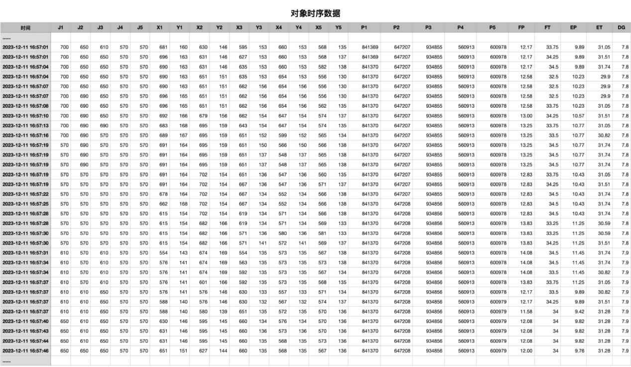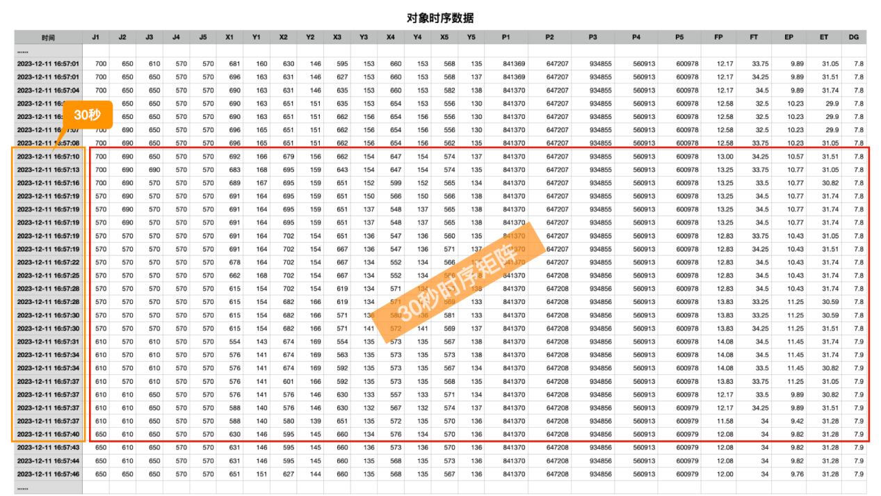 这就是某个时段(比如30秒)该对象所有变量数据所组成的时序矩阵,这在数据的深度使用中会经常用到。