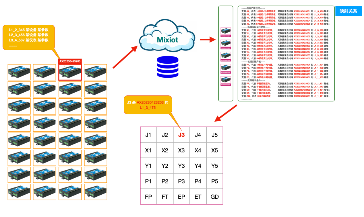 设想,现在已经完成了数据终端与设备的对接,这些数据终端源源不断把数据上报到 MixIOT平台。我们只要知道数据终端和 Key 代表的是什么,就可以建立对象的映射关系。