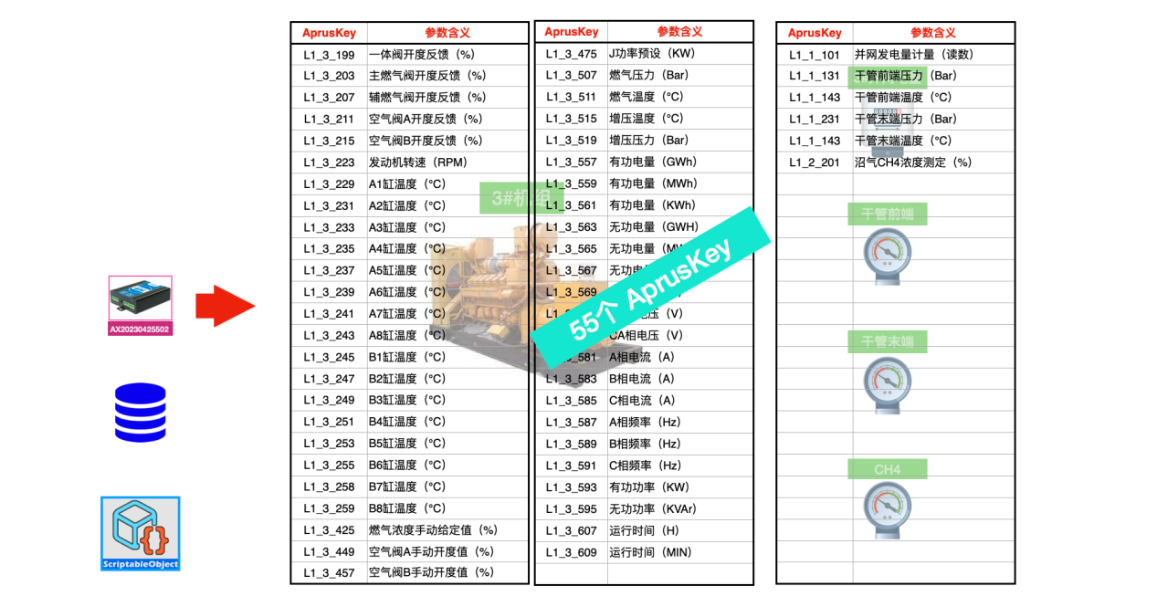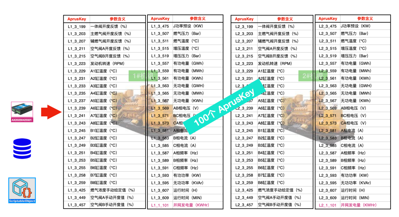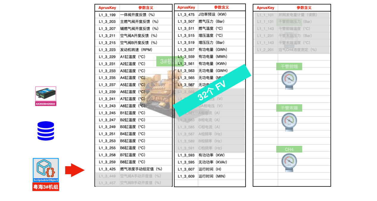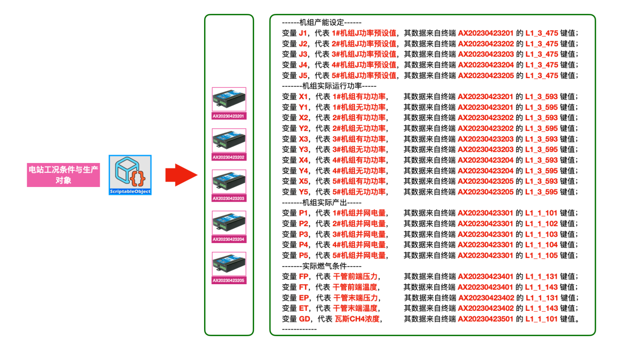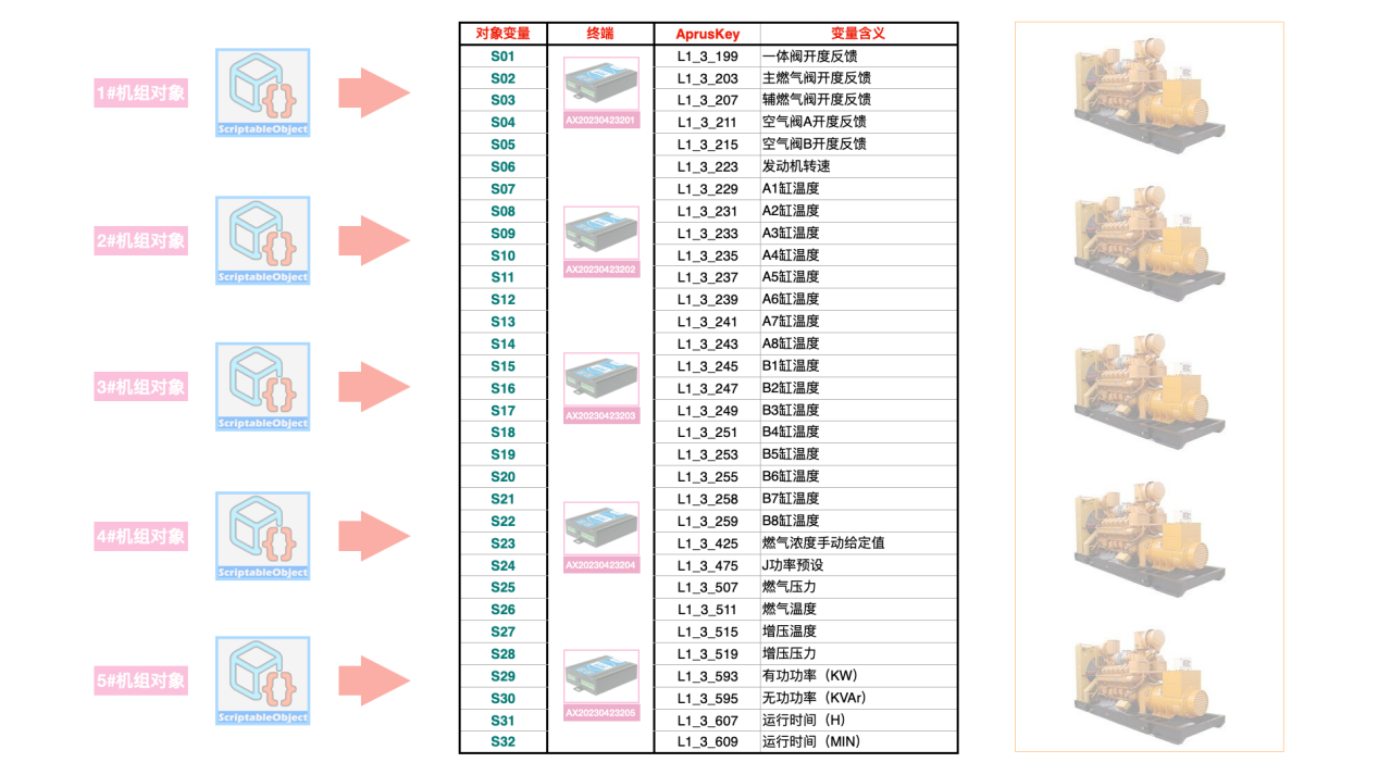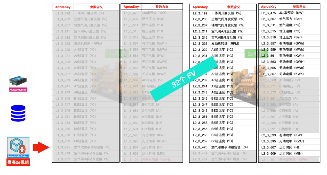 实际上,“$AprusID-1” 对应的就是 “排序为1” 的数据终端编号,也就是 AX20230423201。所以,这样写的脚本,对“佳华1#机组”这个对象而言,等价于: