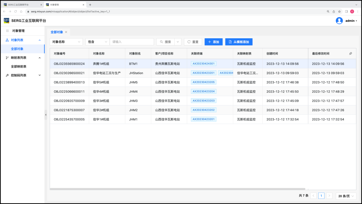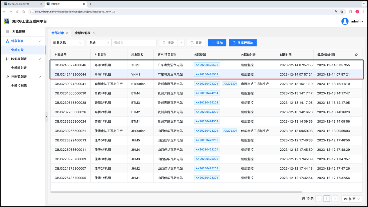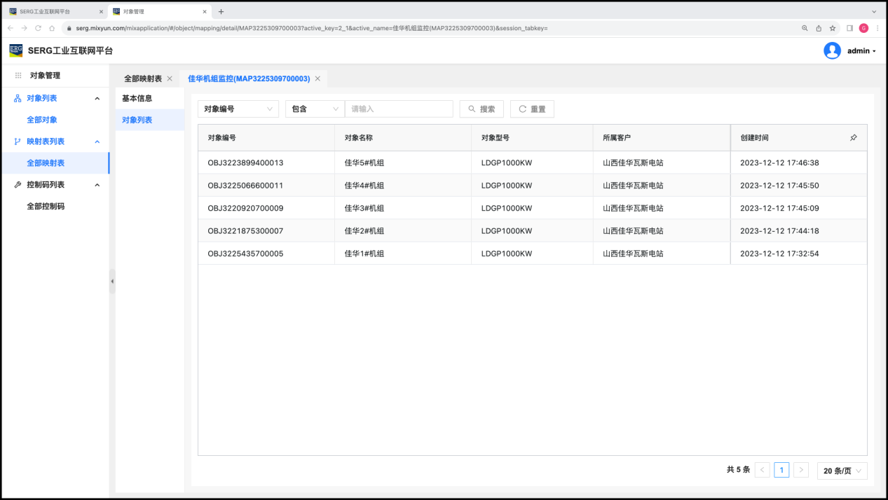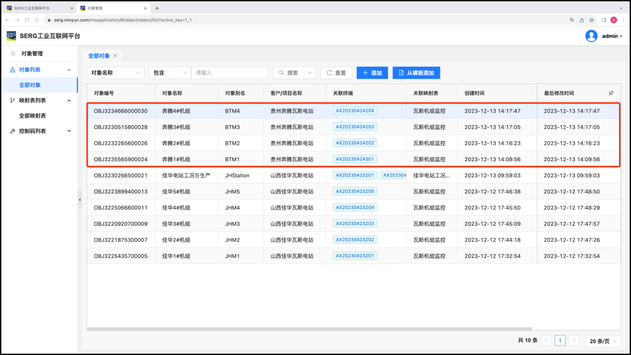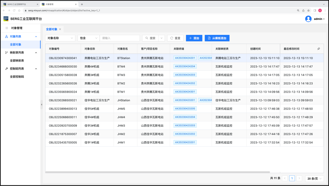 这样就完成了奔腾电站对象5个对象的构建,为后续的MixIOT落地工作做好了准备。