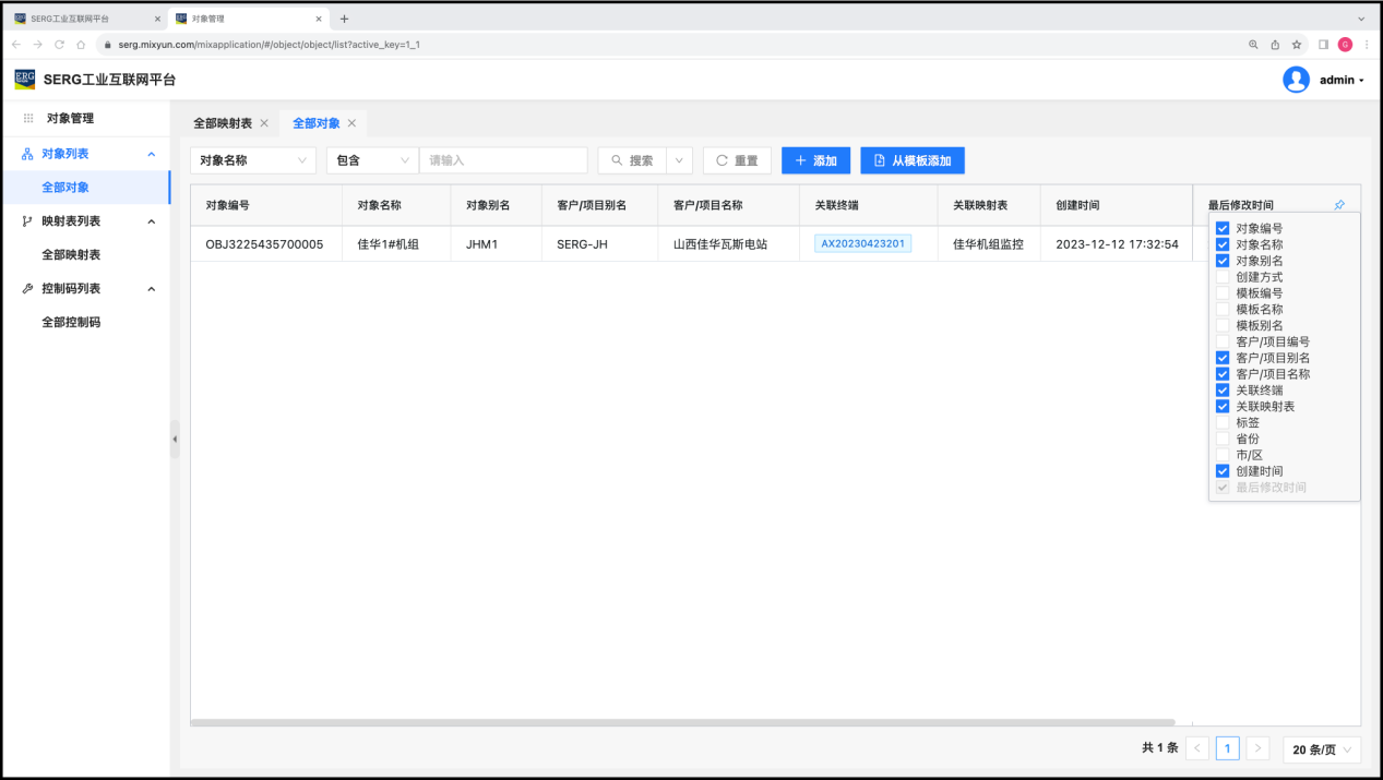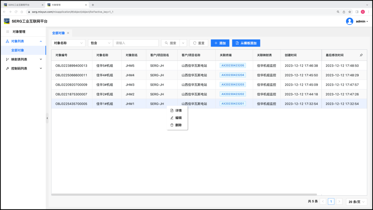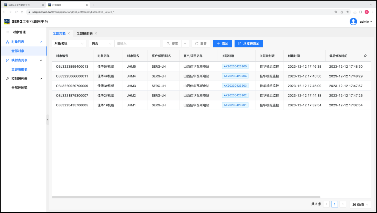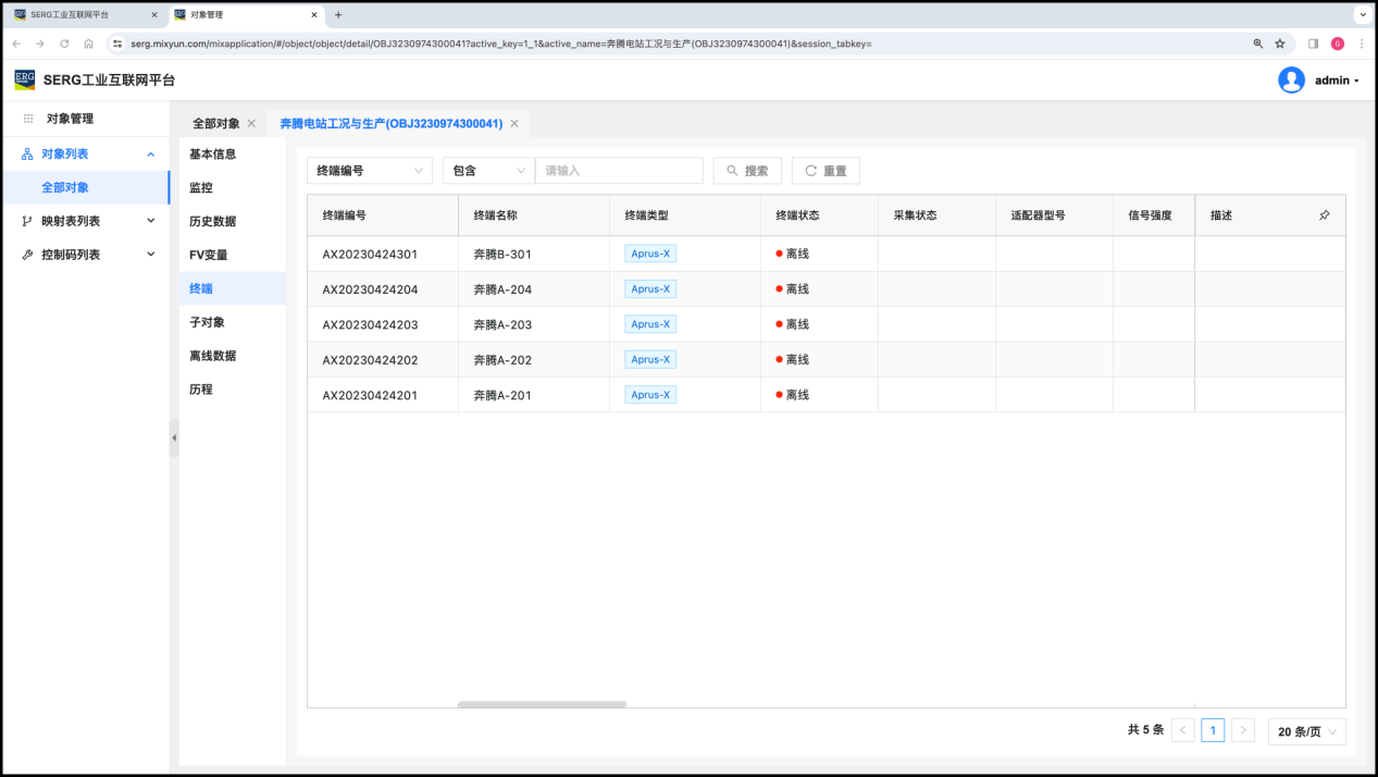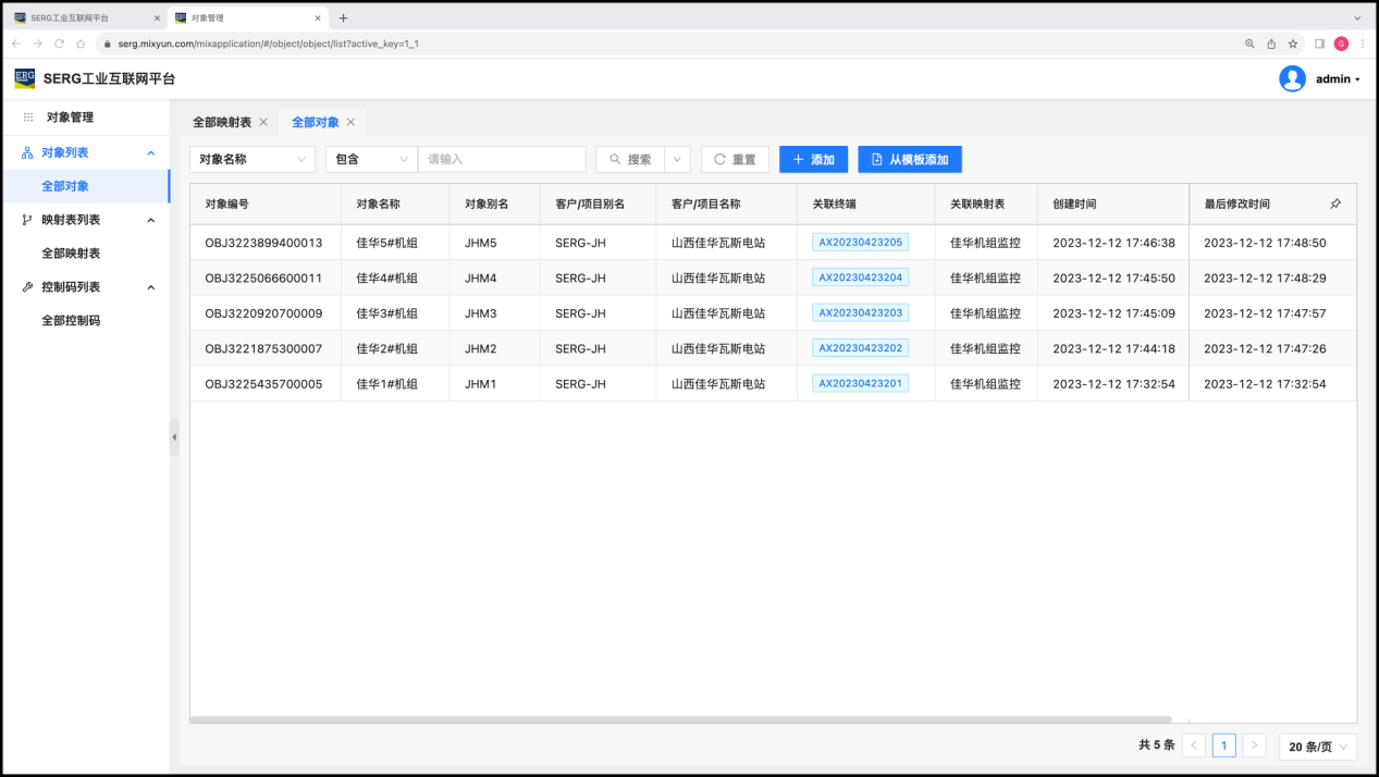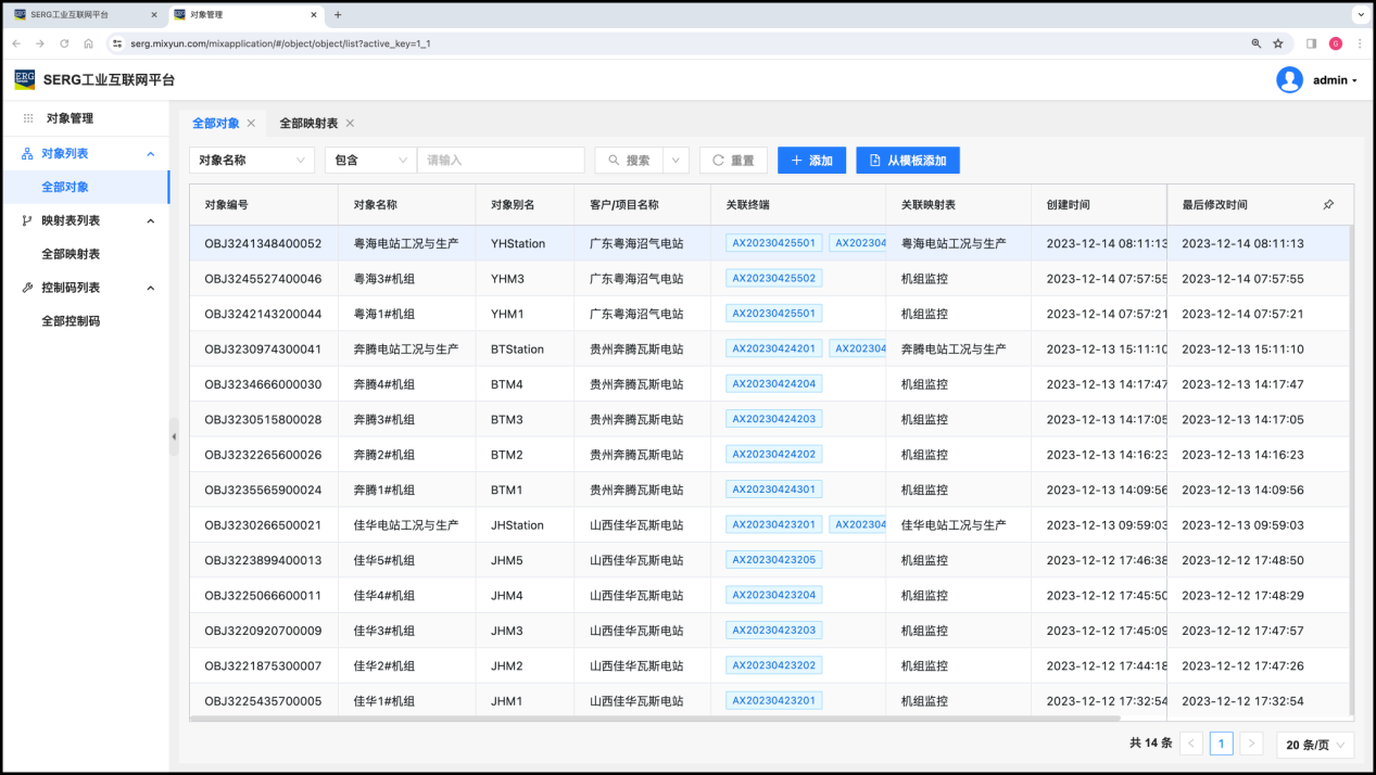 这样就完成了奔腾电站对象5个对象的构建,为后续的MixIOT落地工作做好了准备。