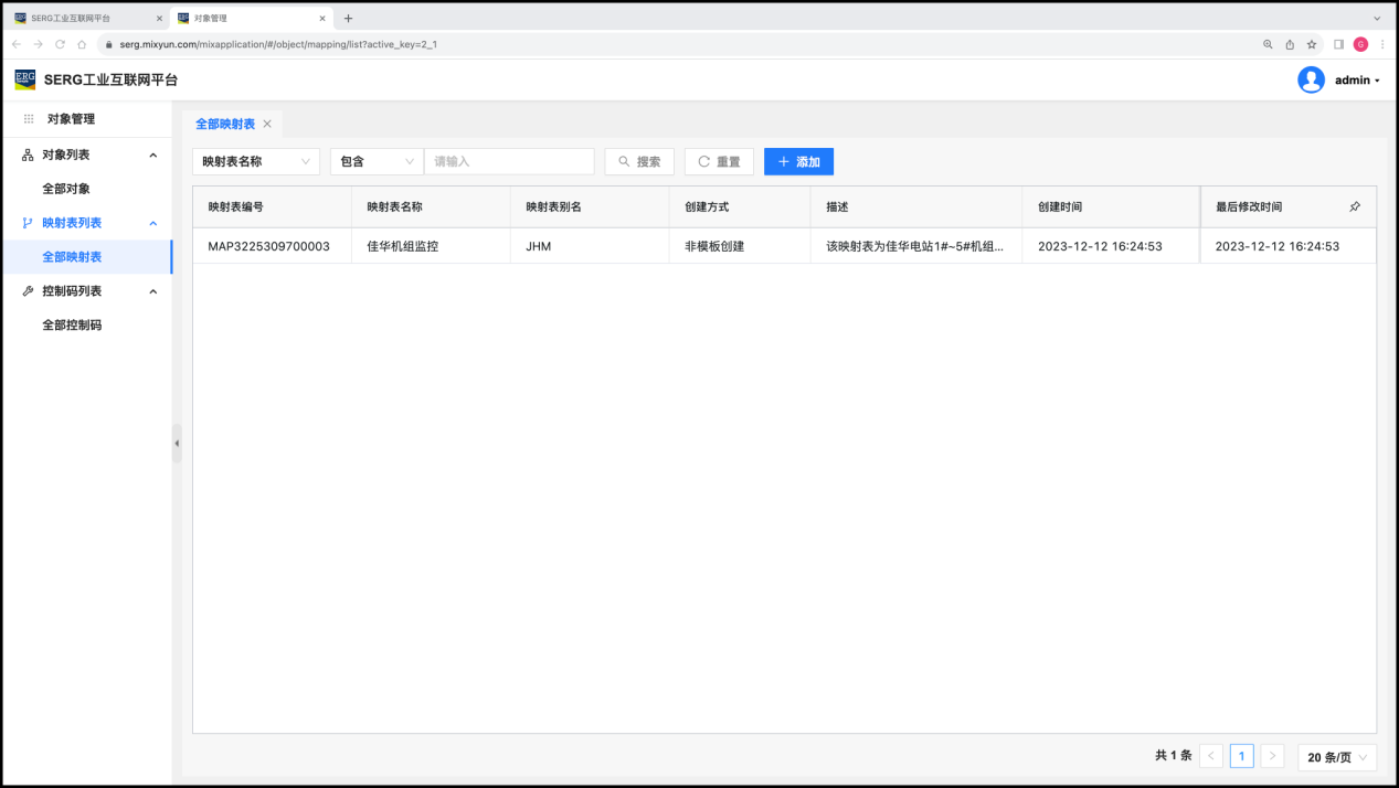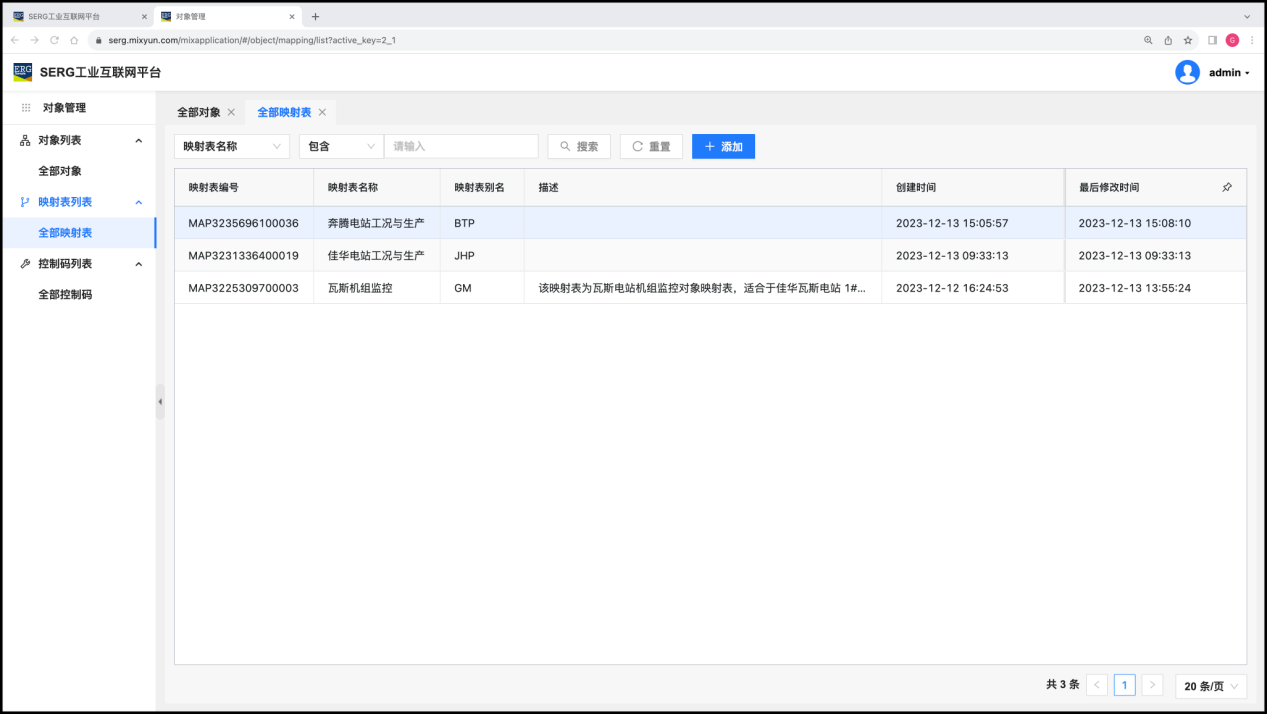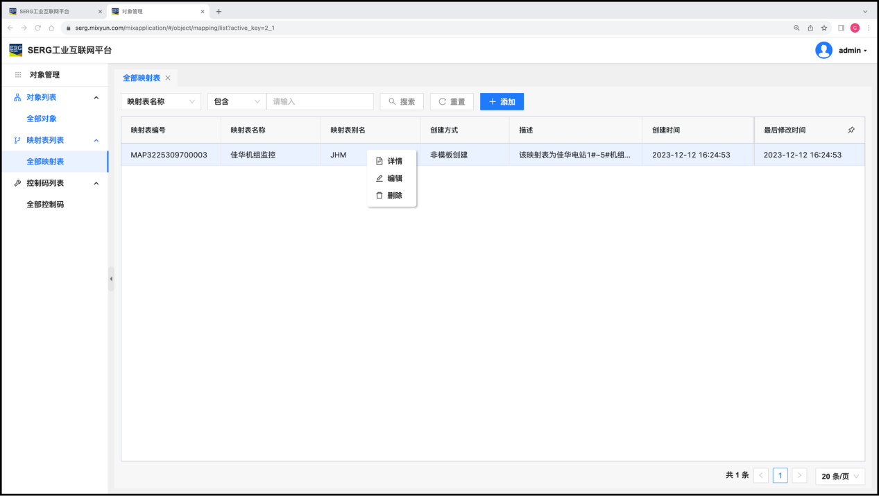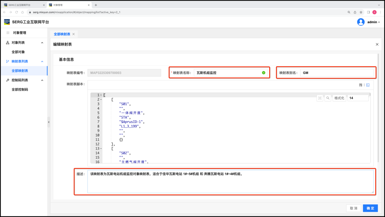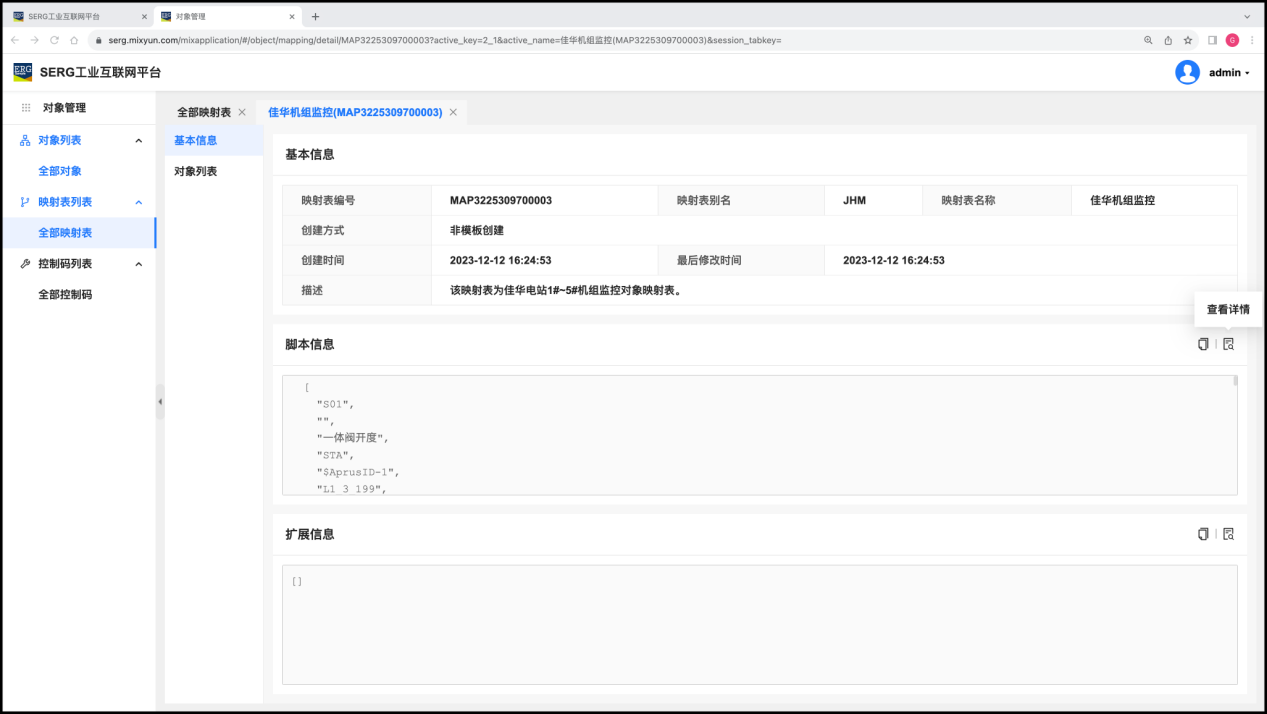 保存后,“对象管理” 应用自动给了这个映射表一个唯一的编号。