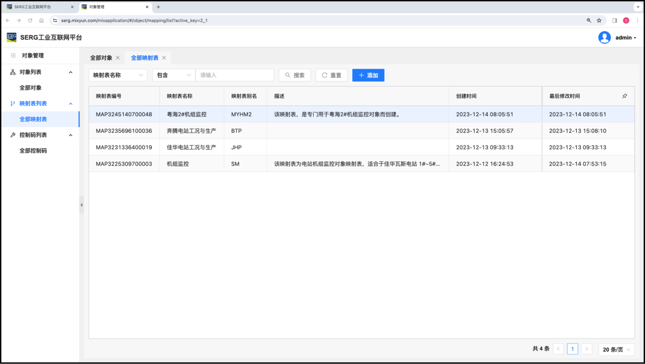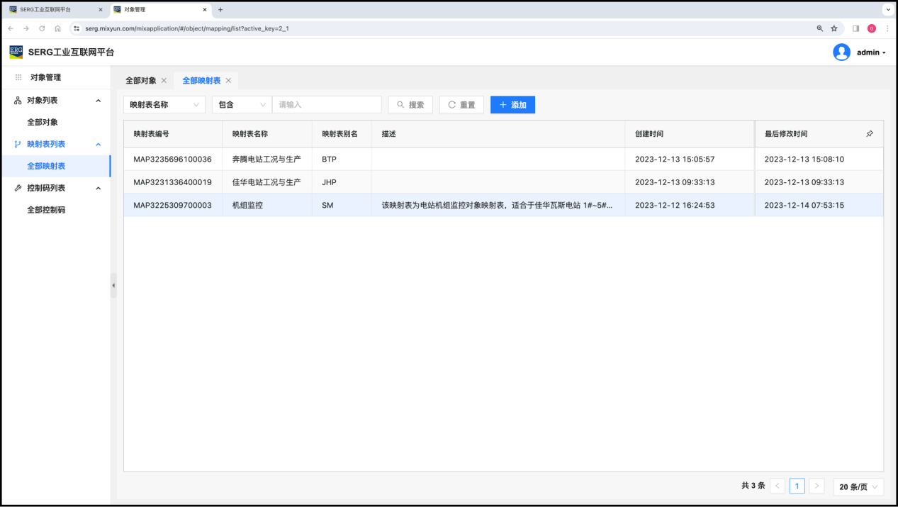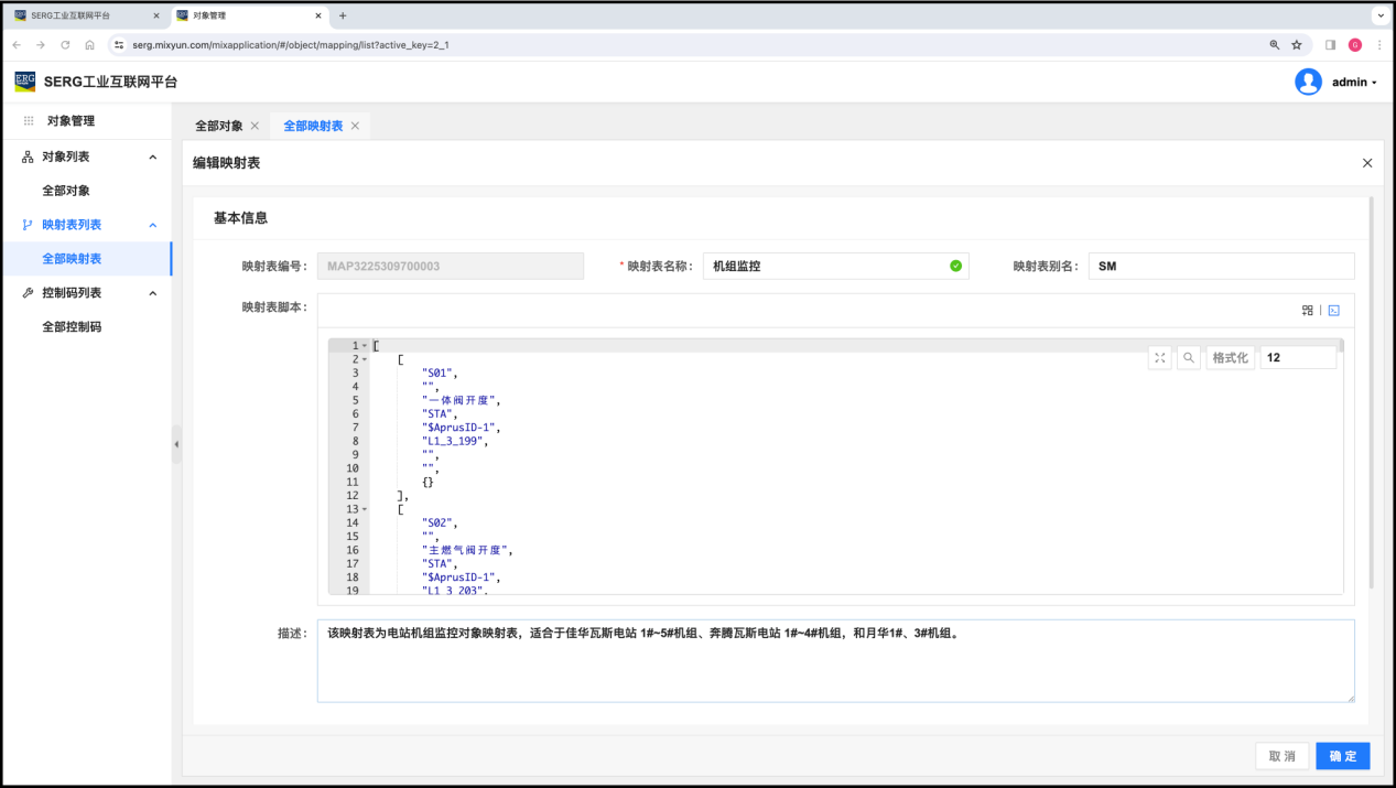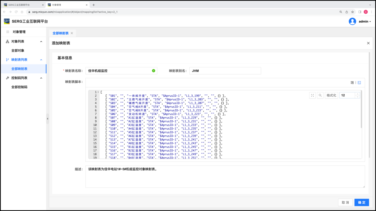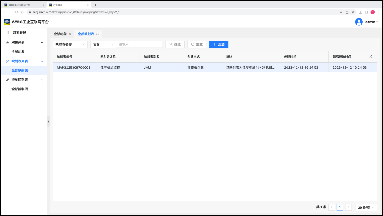 保存后,“对象管理” 应用自动给了这个映射表一个唯一的编号。