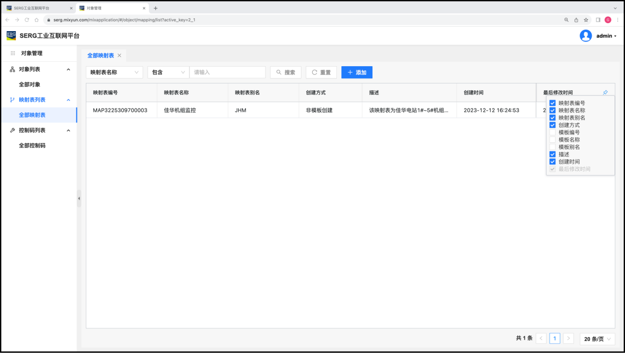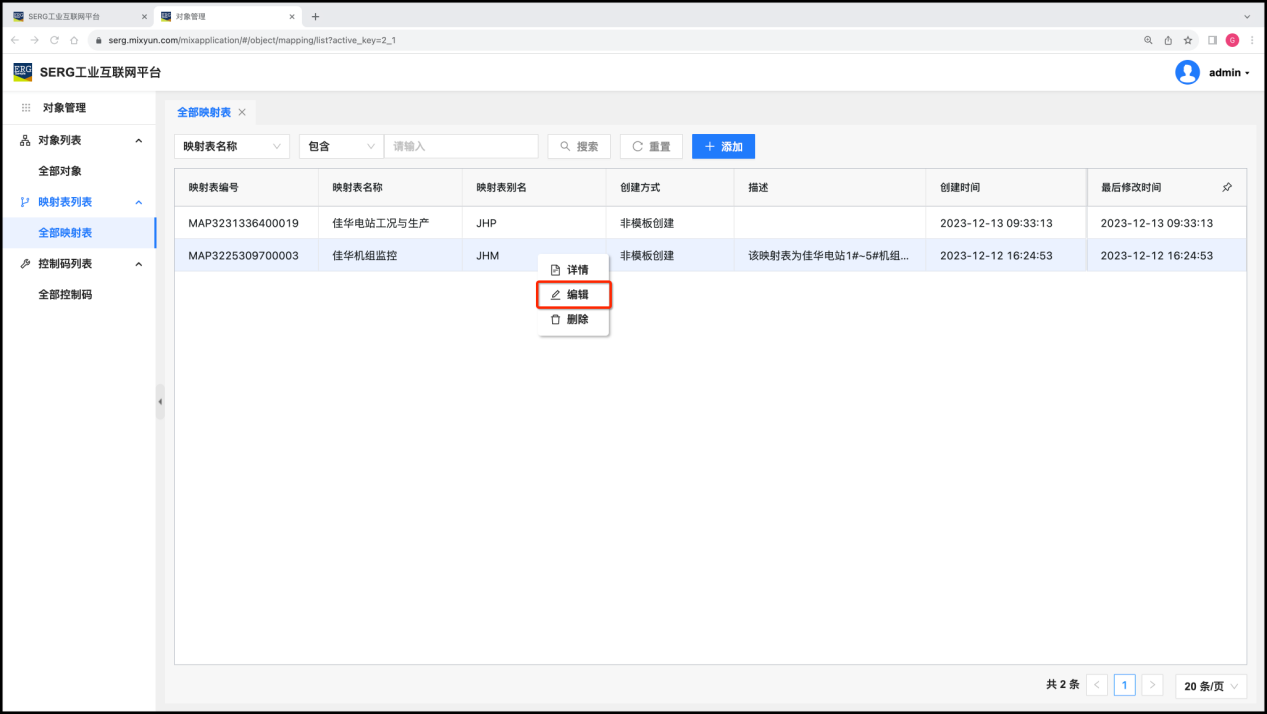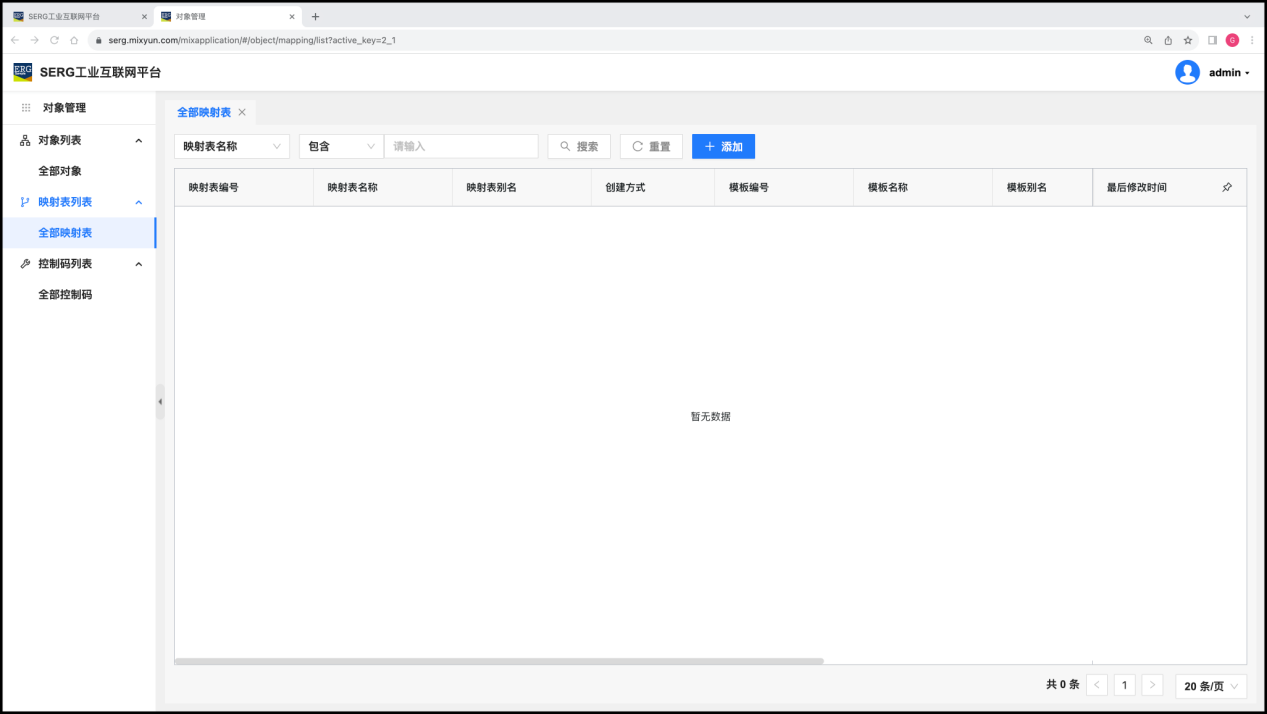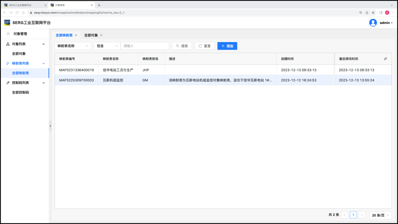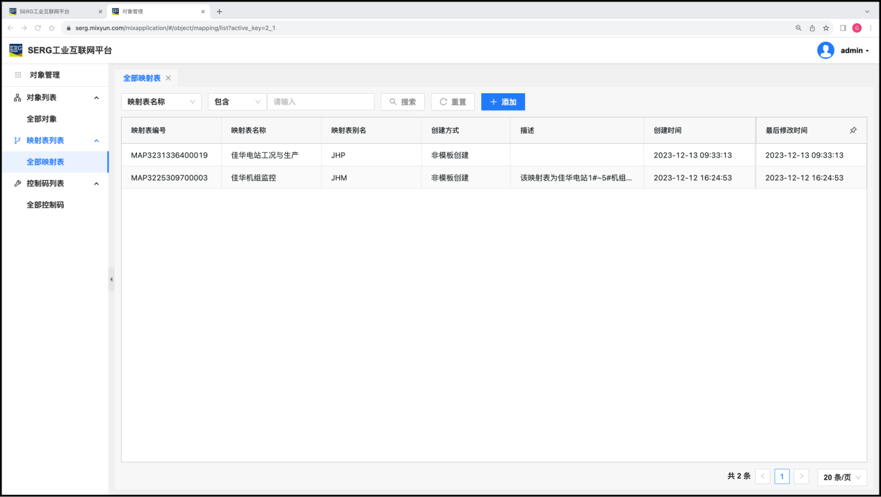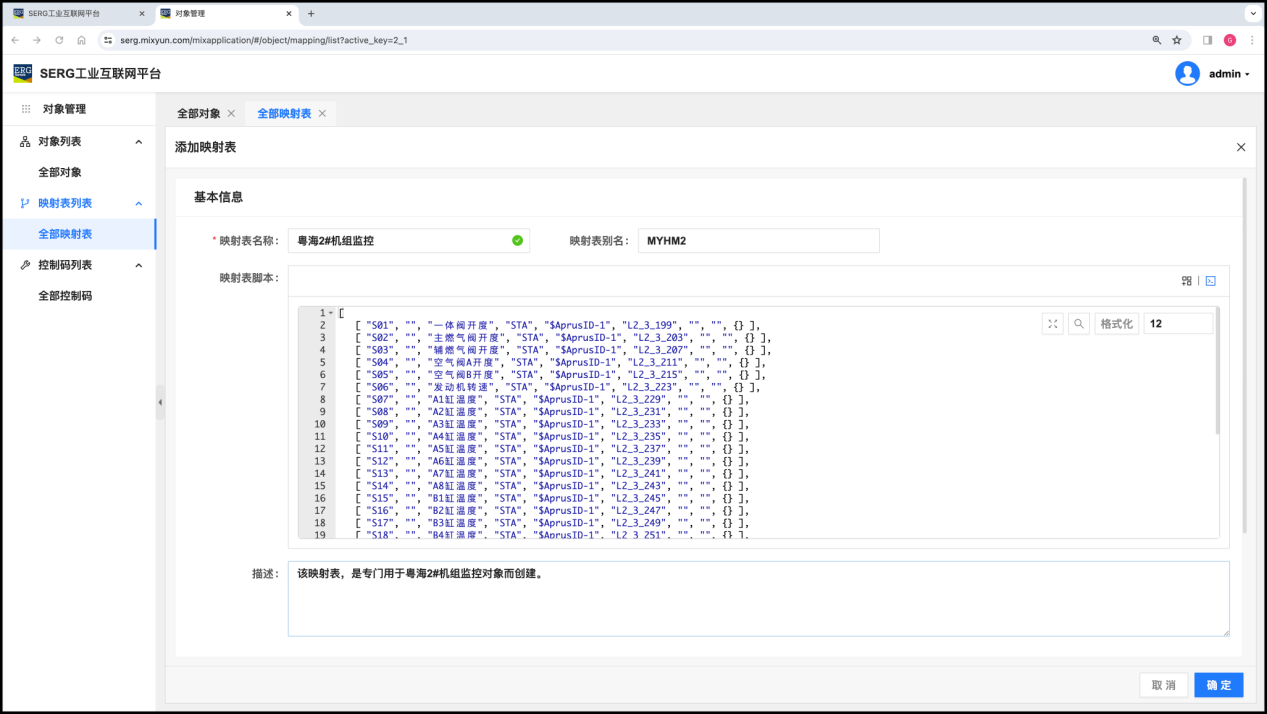 保存后,“对象管理” 应用自动给了这个映射表一个唯一的编号。