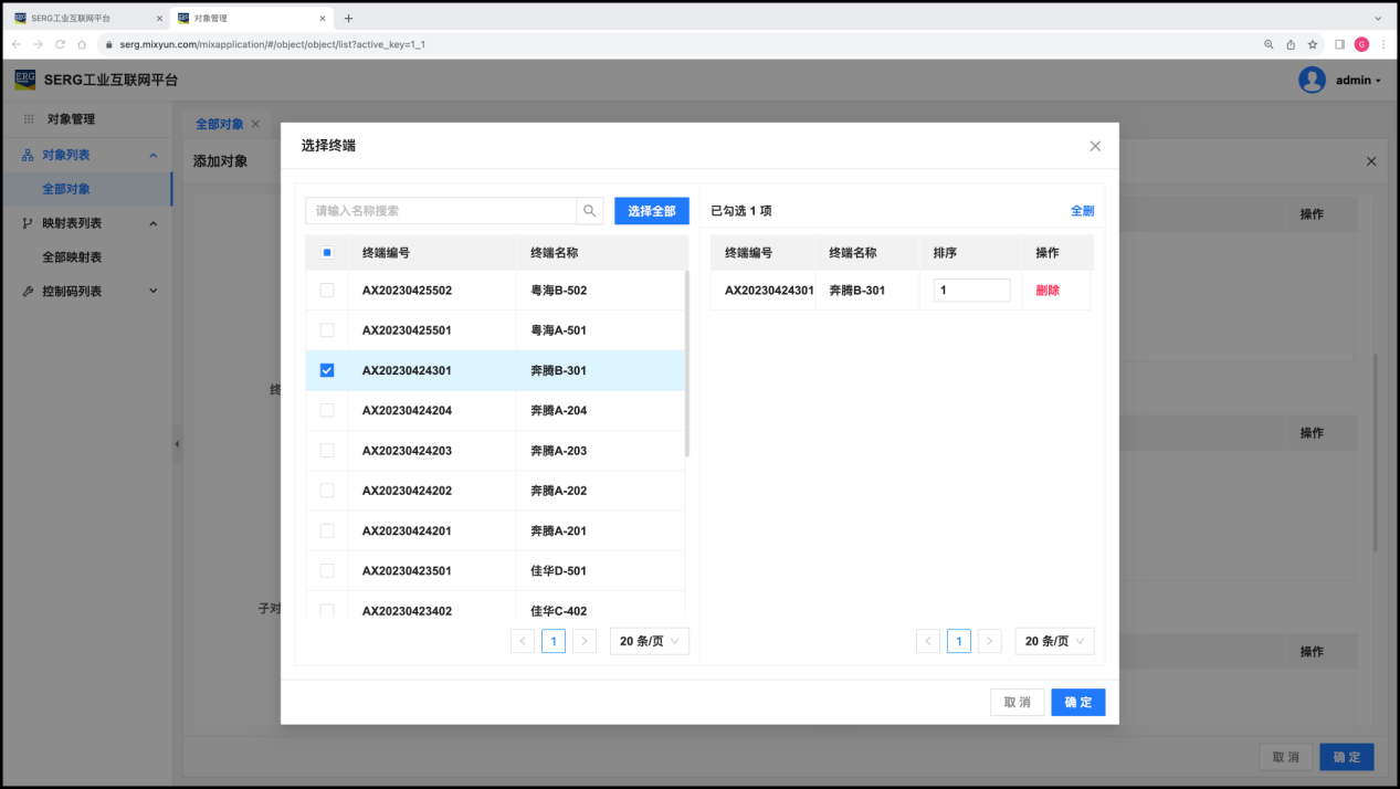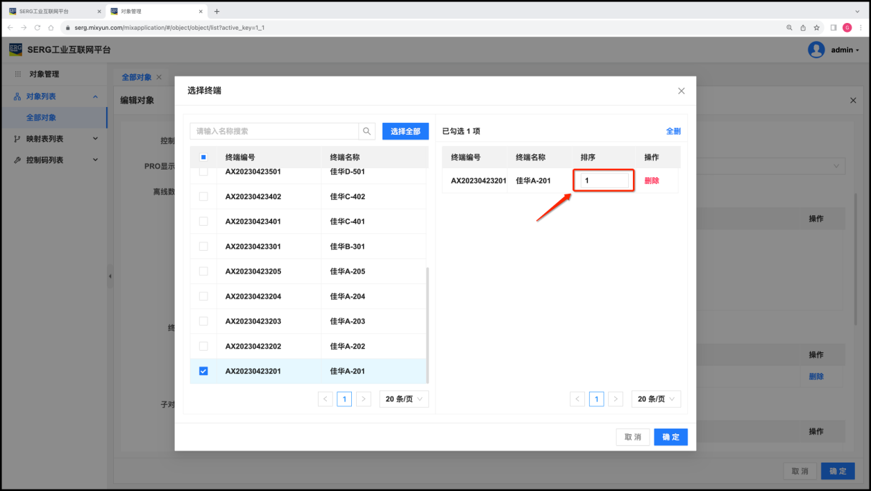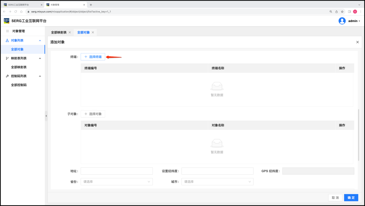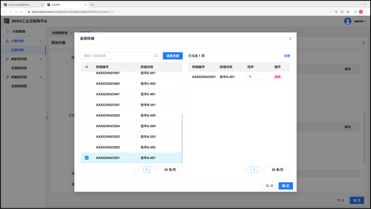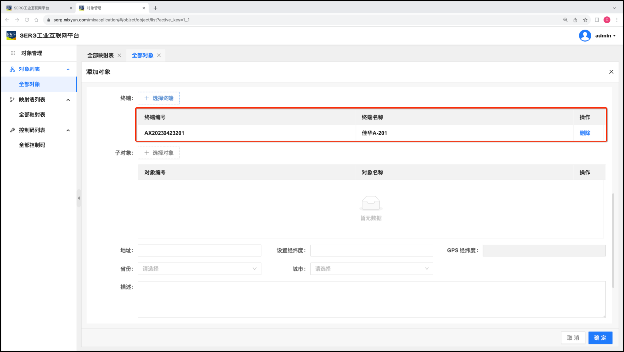 保存后,“对象管理” 应用自动给了这个映射表一个唯一的编号。