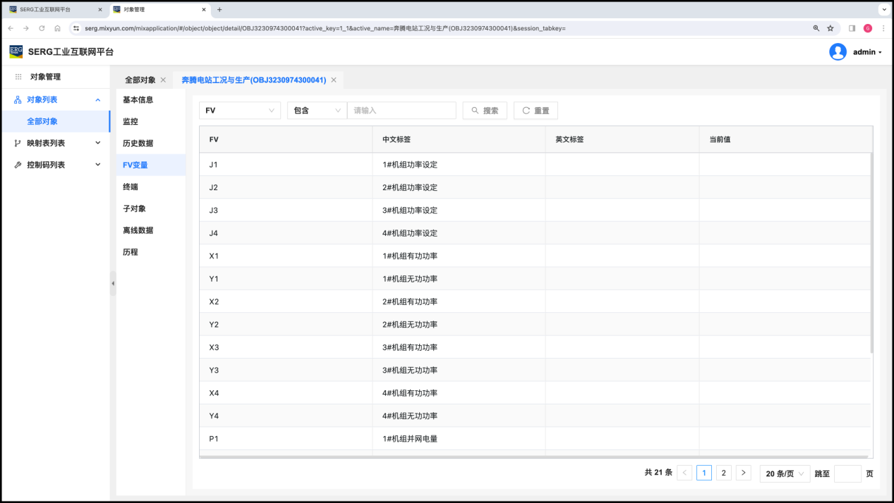 每个电站的对象都有两类,一类是针对机组实时监控,这类对象的FV就是对应机组的关键参数; 另一类是针对整个电站工况条件与运行的信息掌握。