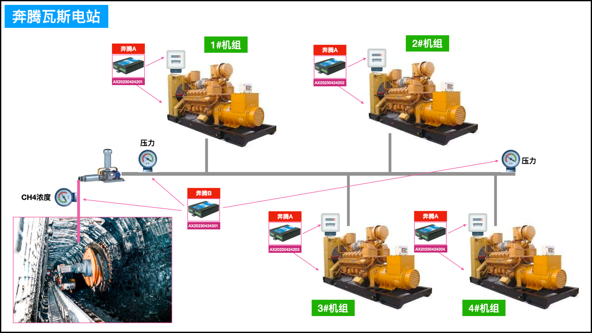 奔腾瓦斯电站的终端对接和数据采集情况: