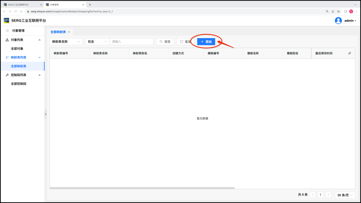 创建映射表,是使用 “对象管理” 应用的第一步。进入 “映射表” 菜单版块: