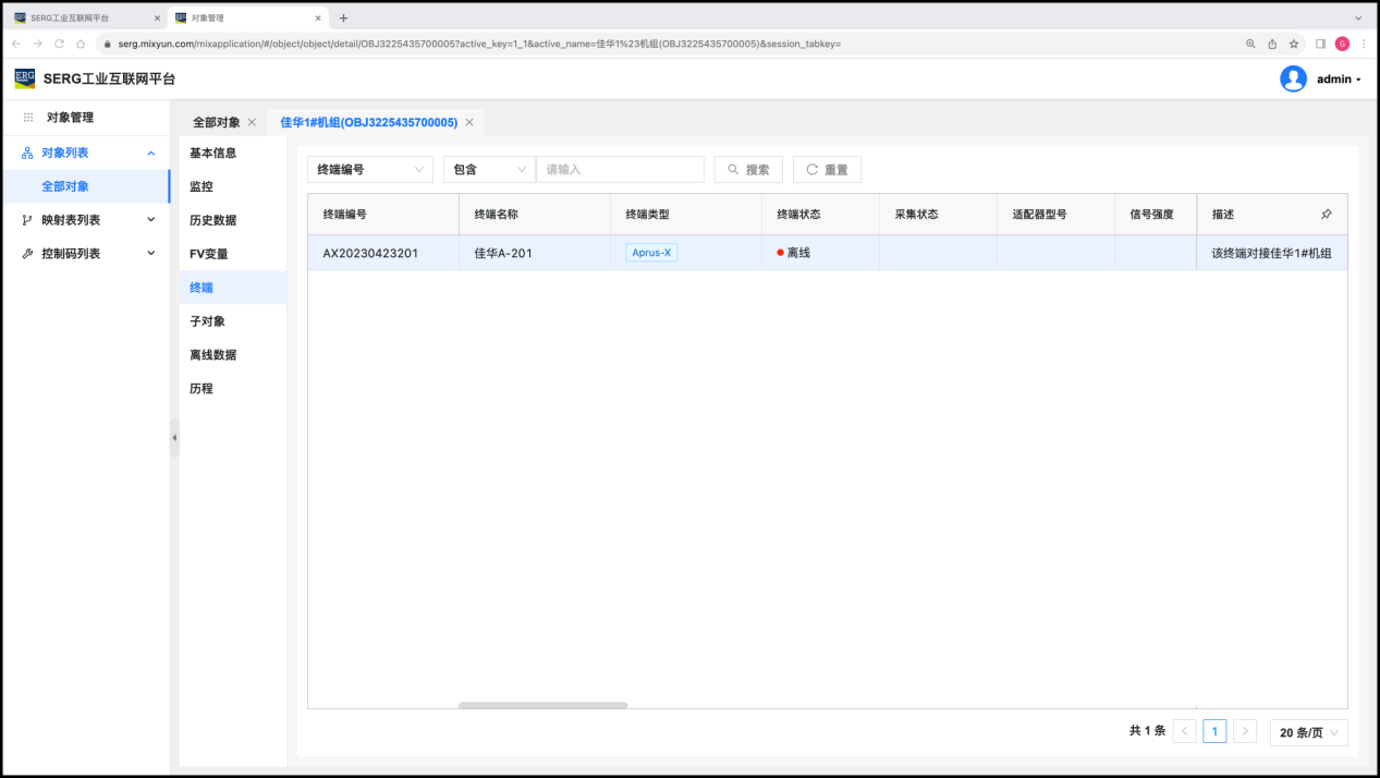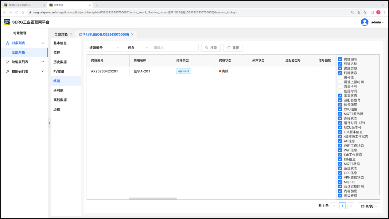 这样,在 MixIOT SERG 平台上,就正式有了对象和对象数据。现在我们也清楚了,对象的变量是怎么来的,对象的数据又是什么样的。