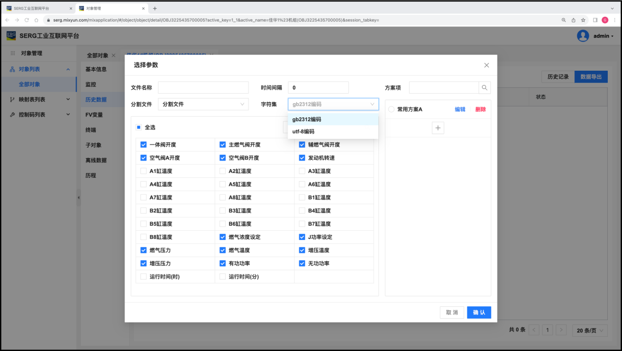 “客户/项目” 选择 “山西佳华瓦斯电站”,这是已经在“客户与项目”应用中完成的信息创建;