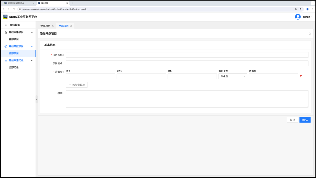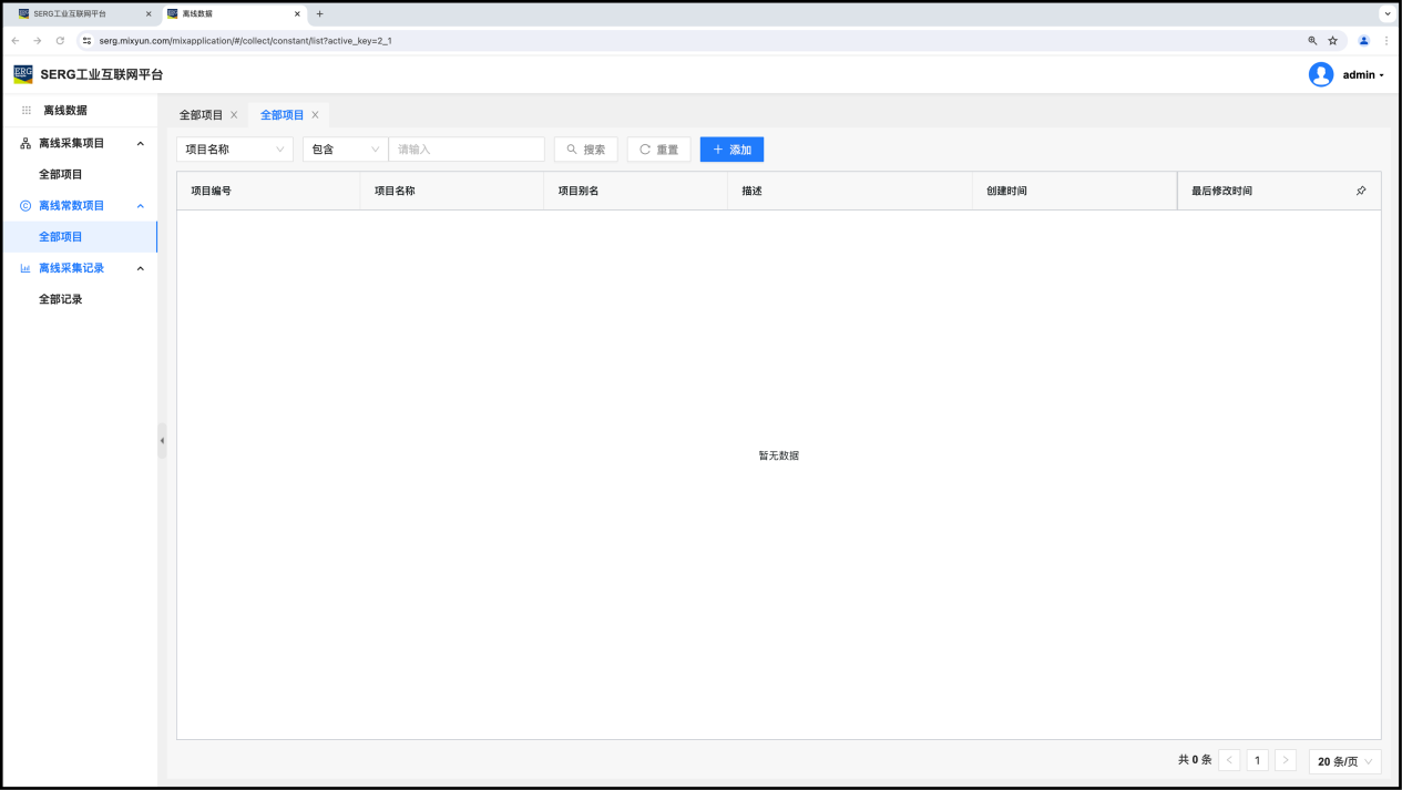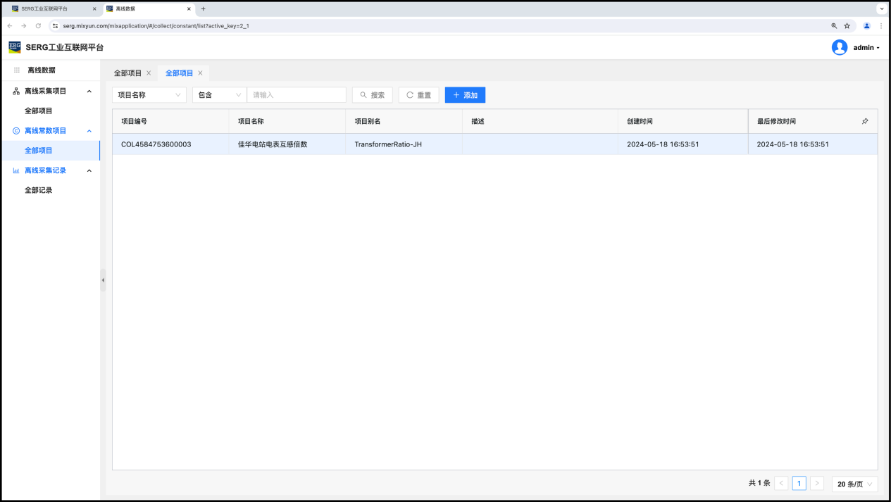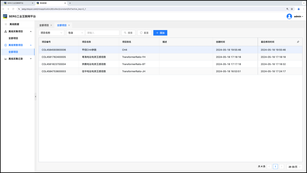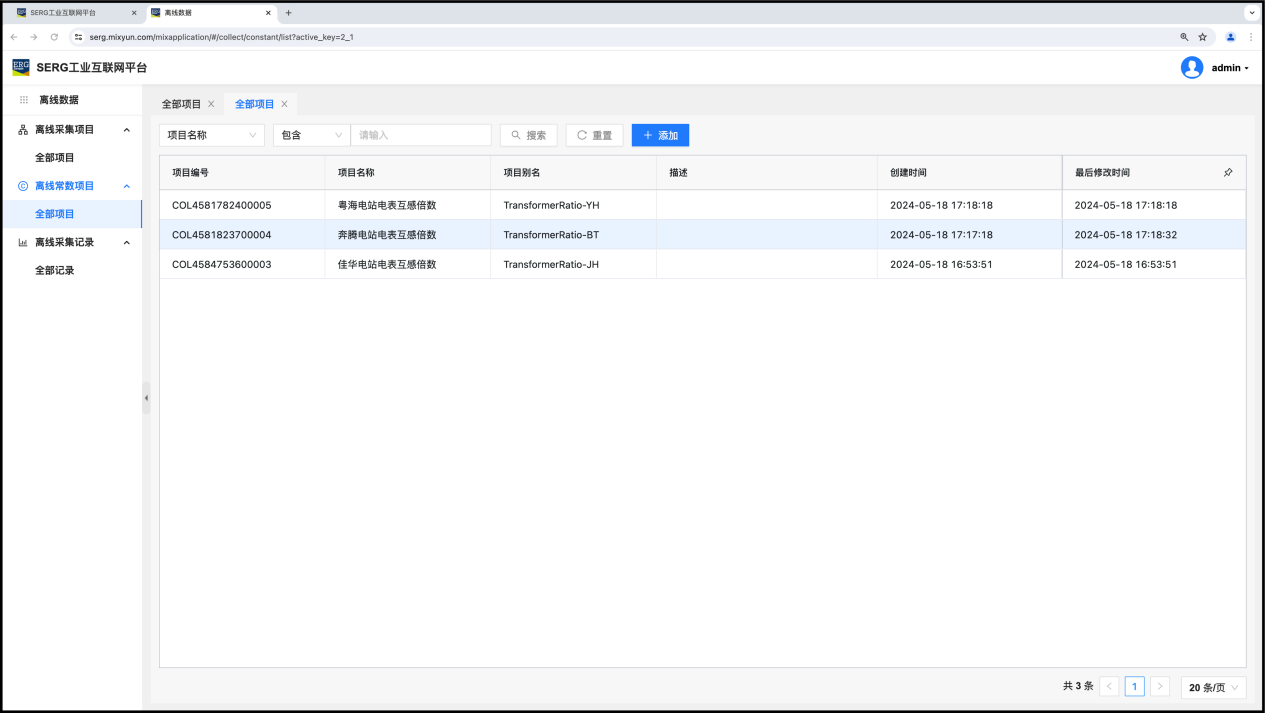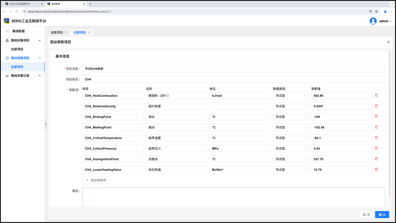 “离线数据” 应用除了要管理离线采集项目以及离线数据项目所采集数据外,还要对一些常数项进行统一的管理。
