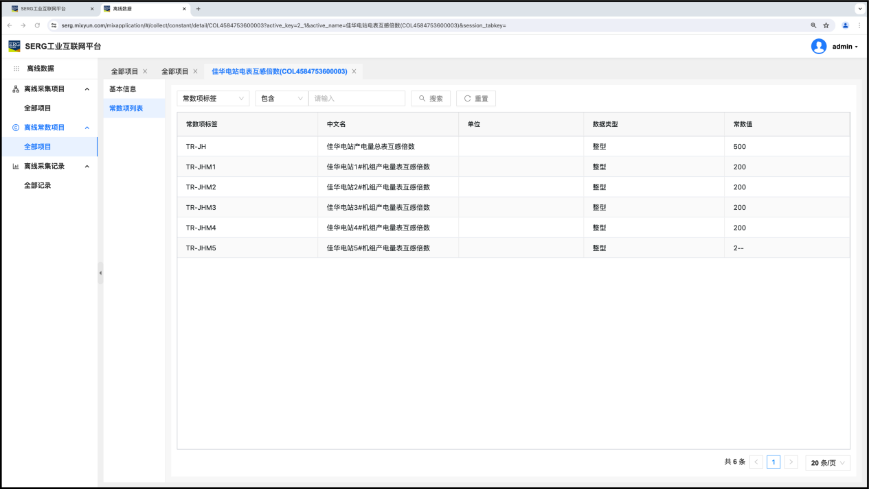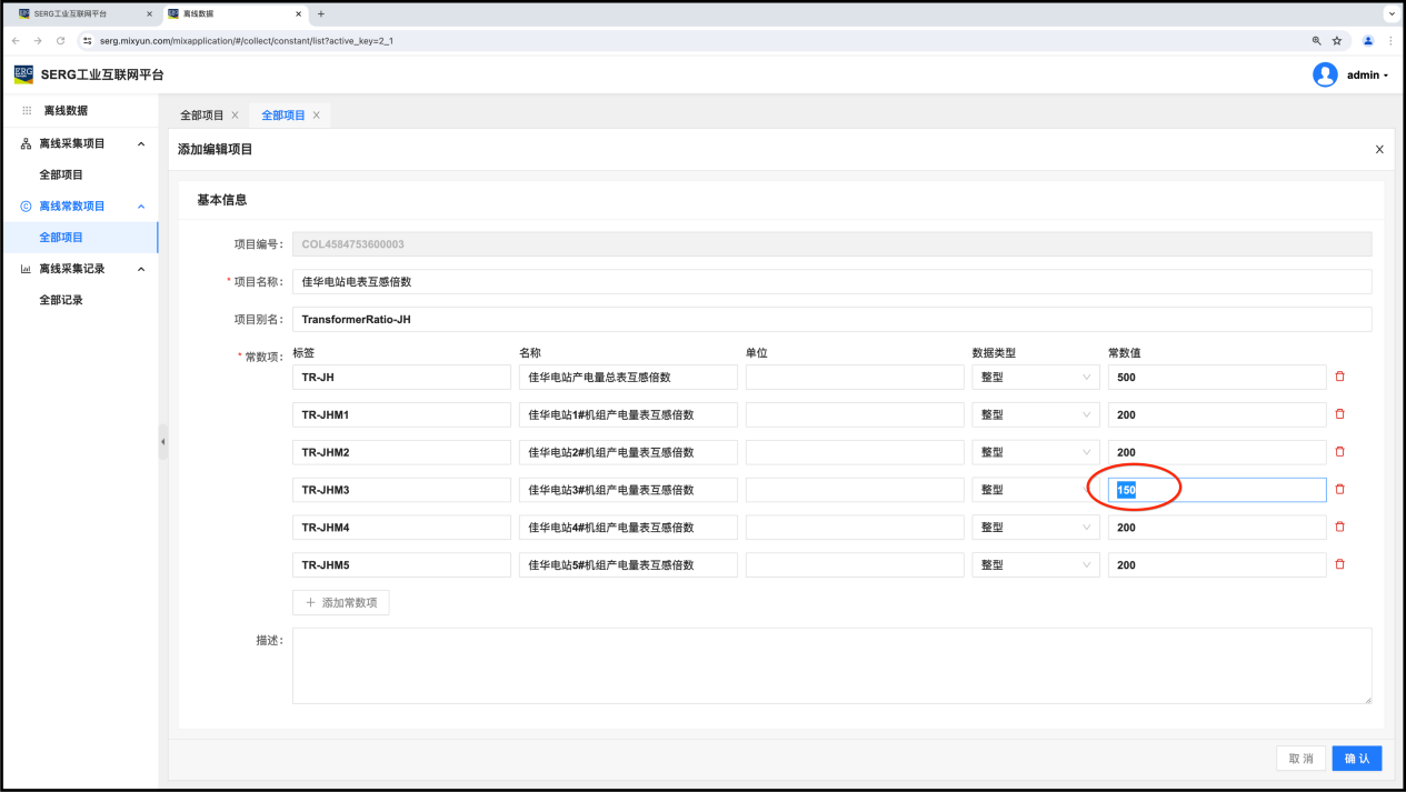 MixIOT 其他应用中,如果需要引用这些常数的时候,只需要标明标识就可以,比如COL4584753600003.TR-JHM3这个标识代表的常数项就是“佳华3#机组发电量电表互感倍数”,现在这个常数值为200。