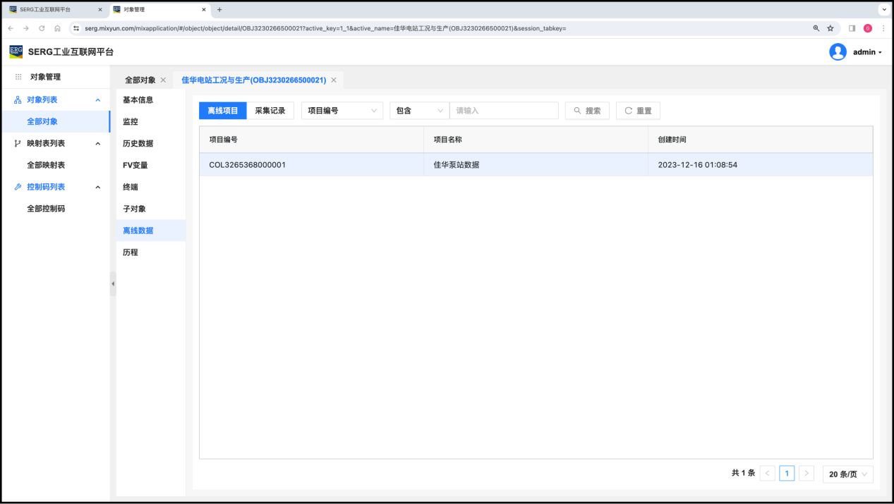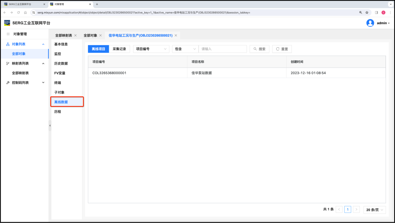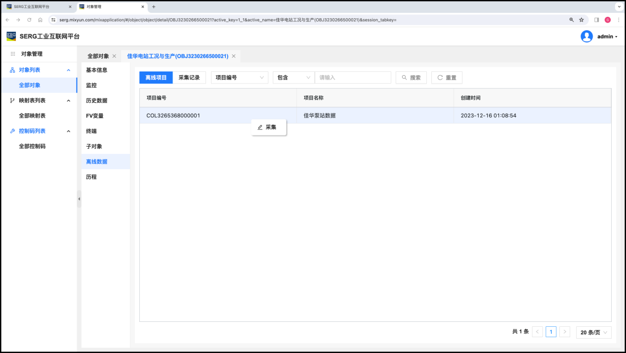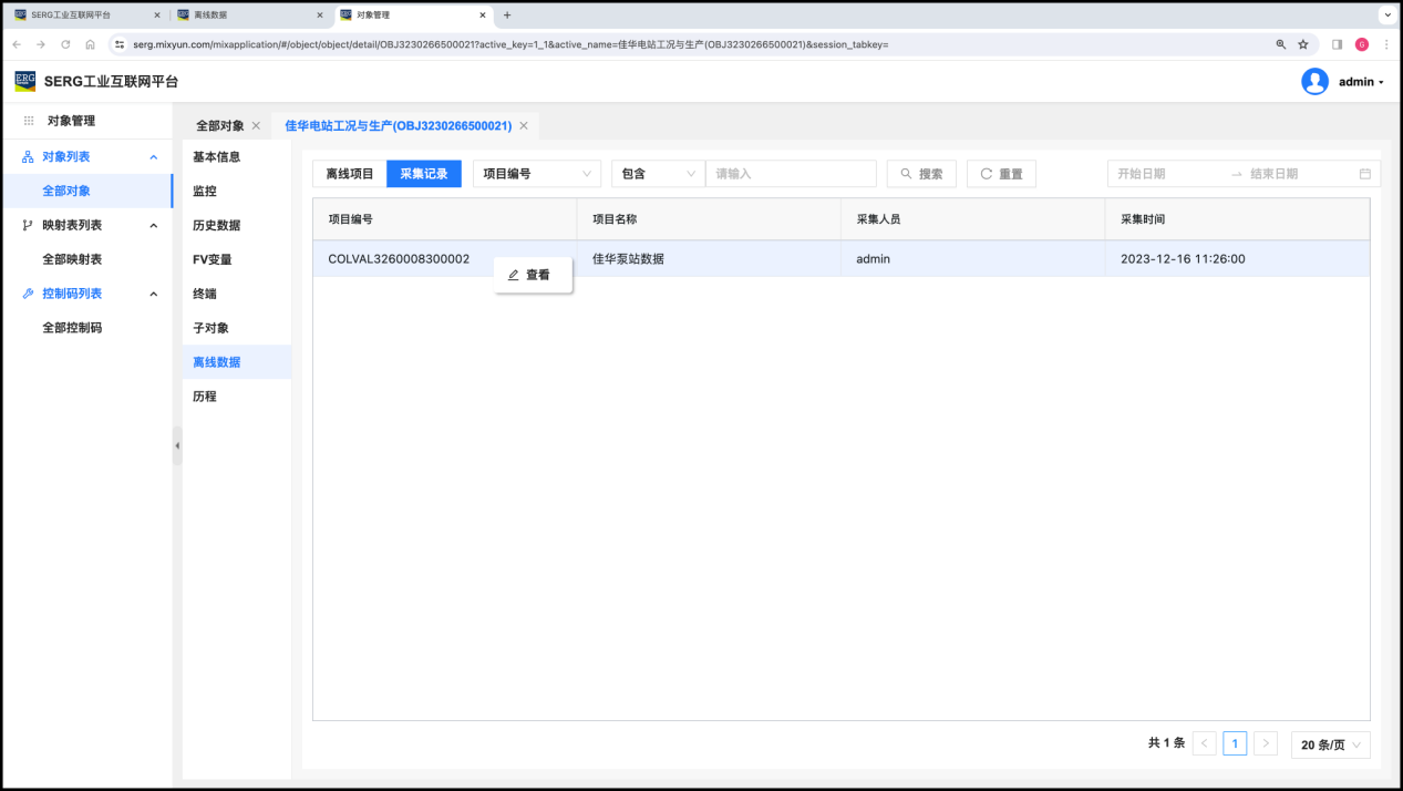 保存后,在对象的详情里面,就可以找到添加上去的离线数据采集项目。