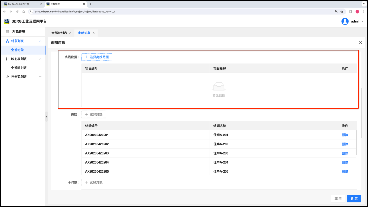 这个用例很典型,刚才我们一直在做关于“离线数据”的事情,但是却要兜兜转转,又转到当初似乎已经完成了的映射表和对象。其实这是MixIOT具体项目落地实施的一种常态。