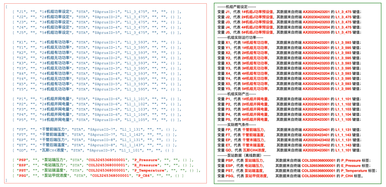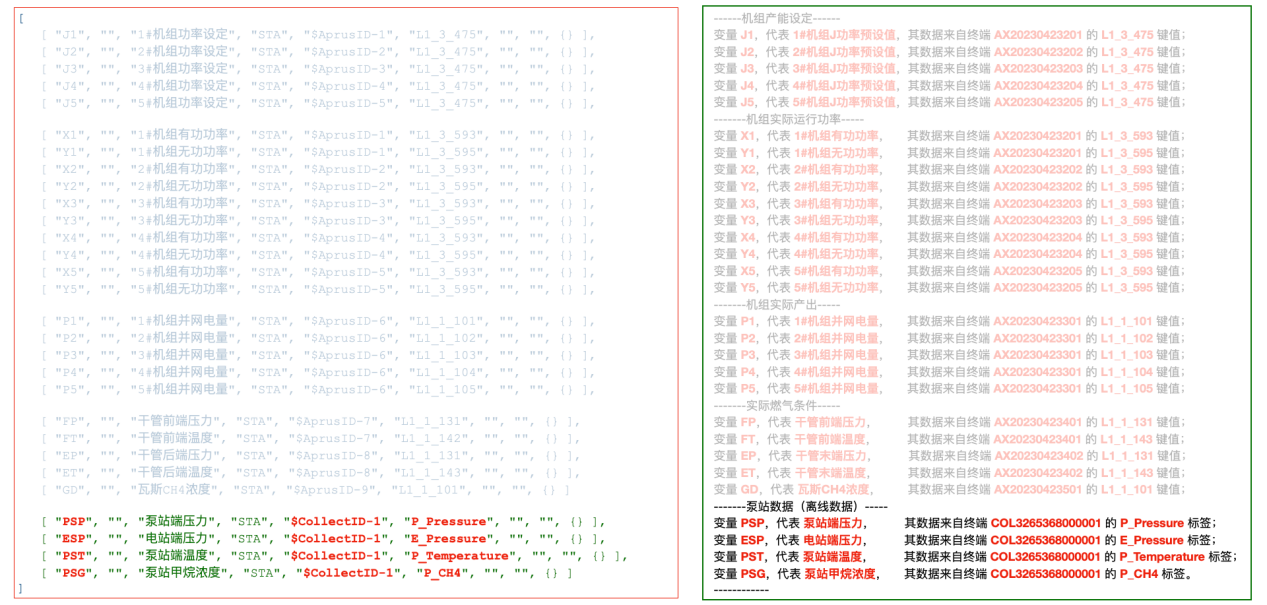 这四个数据 “泵站的压力、电站的压力、入口的温度以及(泵站测定的)甲烷浓度数据”, 是这个项目里面的“数据采集项”。