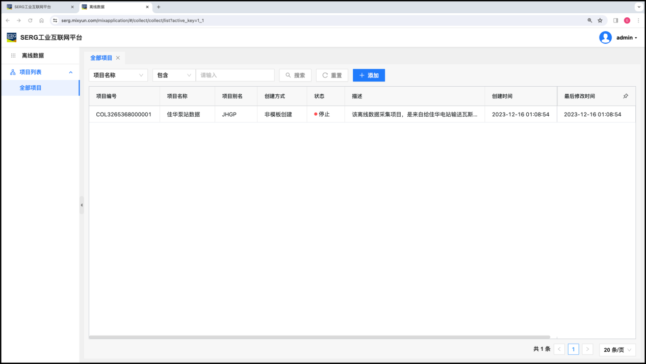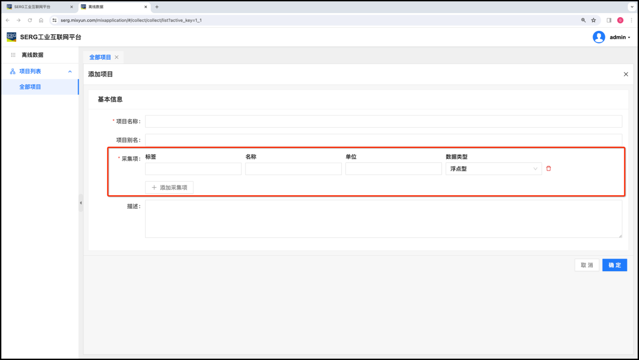 一个 “离线数据采集项目” 可以有多个离线数据采集项。