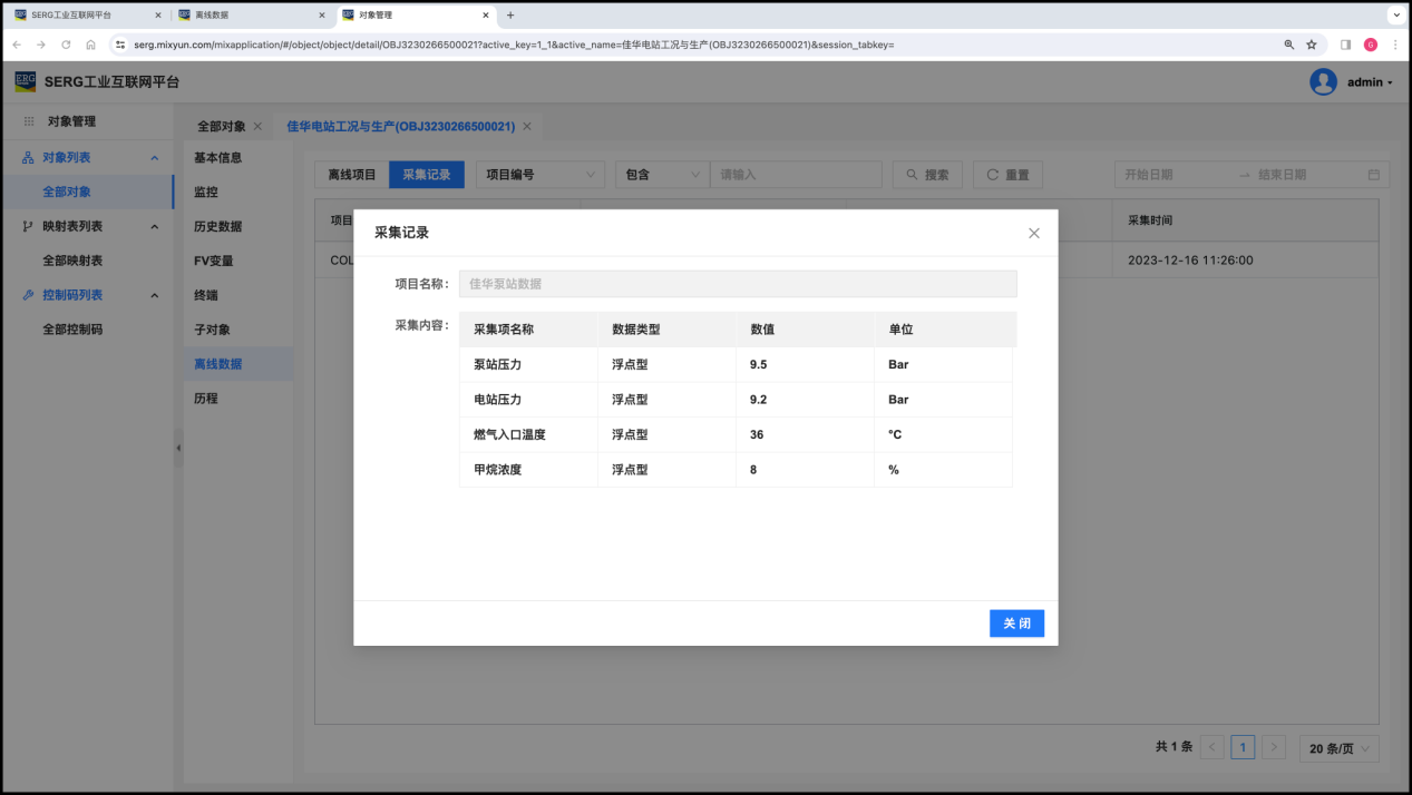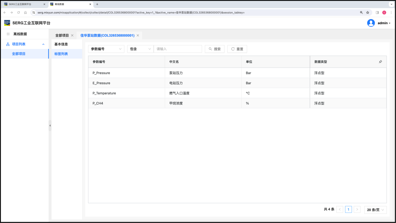 在佳华瓦斯电站,泵站的这些数据,就可以作为一个 “离线数据采集项目”。