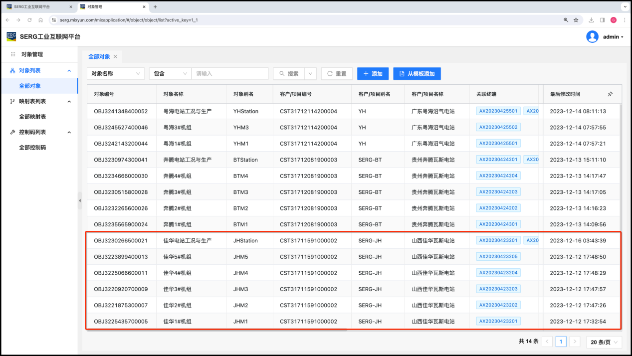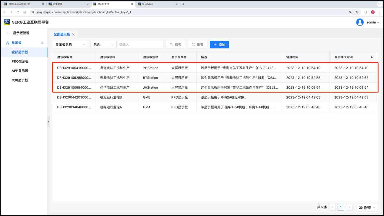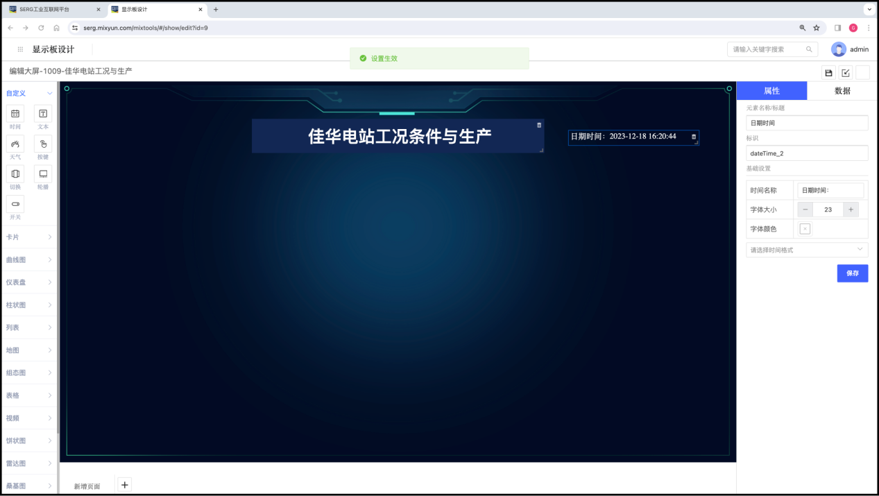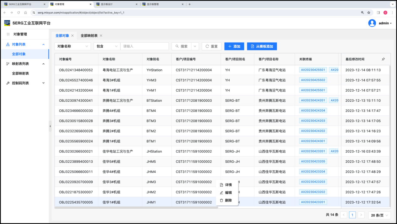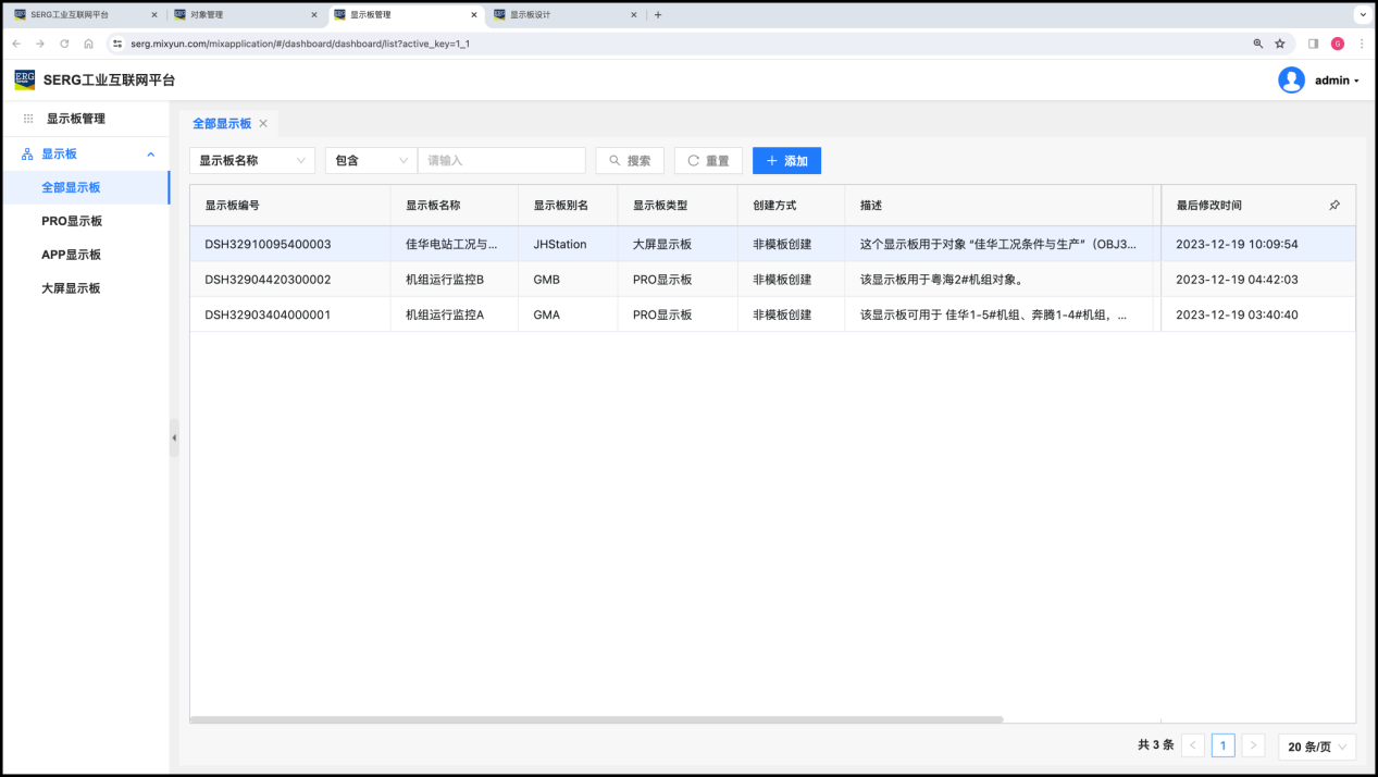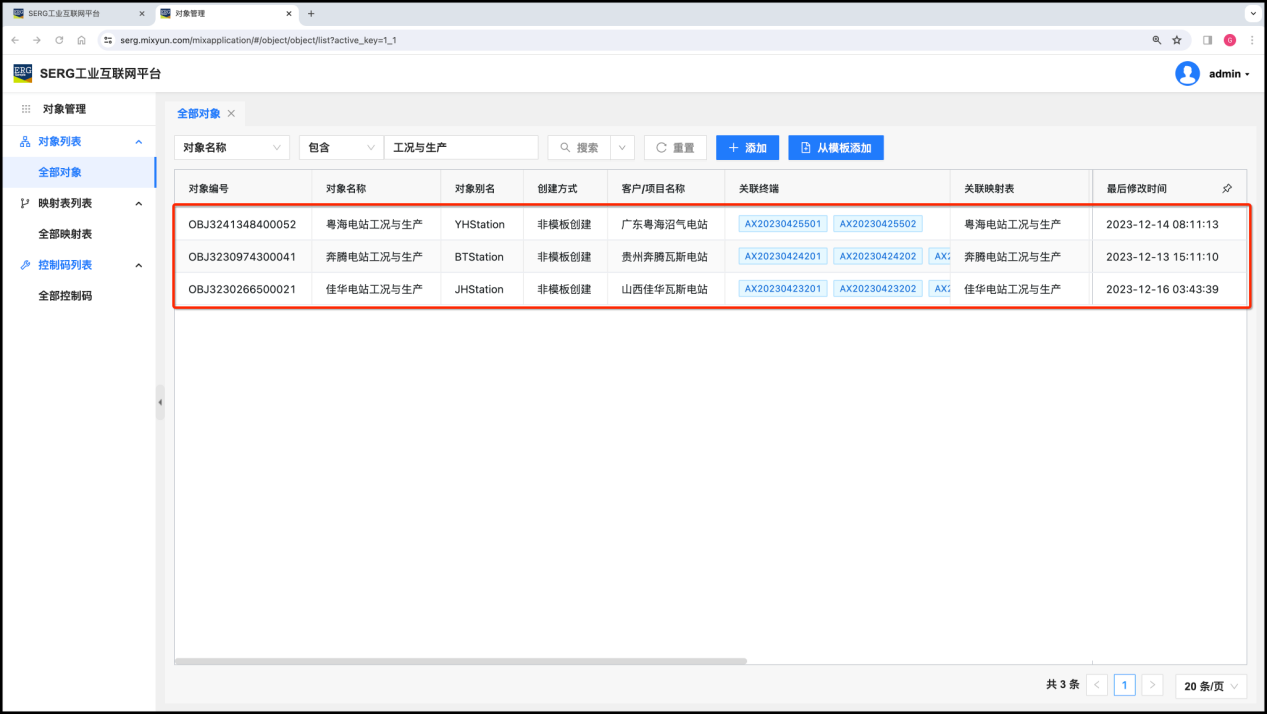 在 “对象管理” 应用中,把这个显示板与“佳华电站工况与生产”对象关联上:
