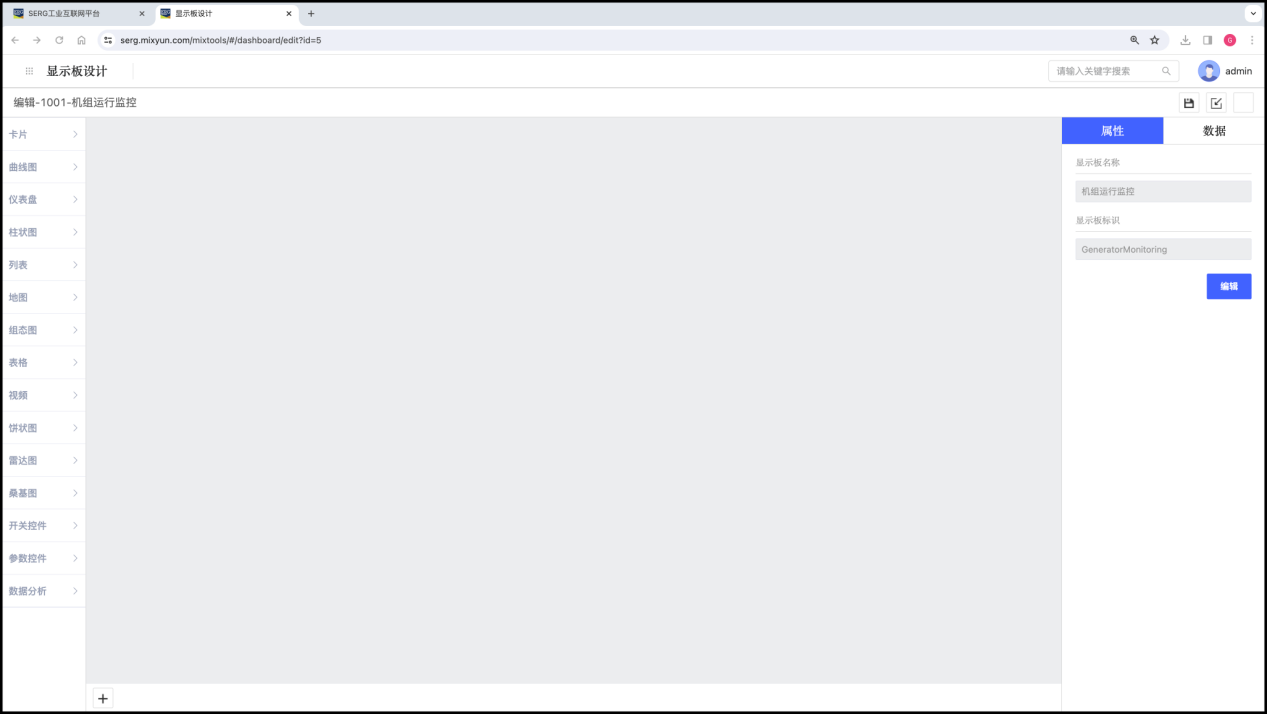 我们知道,这个显示板设计里面是空的。先复制之前完成的 “机组运行监控” 显示板设计的脚本,打开“机组运行监控B”显示板设计: