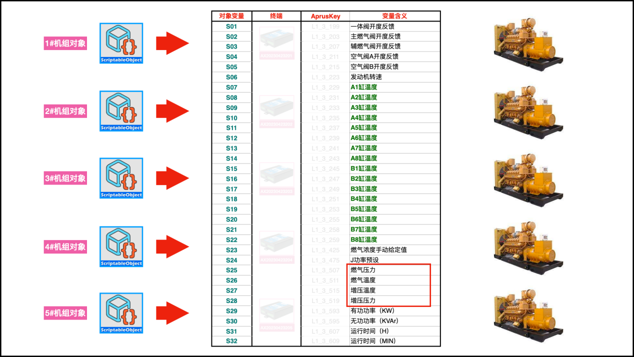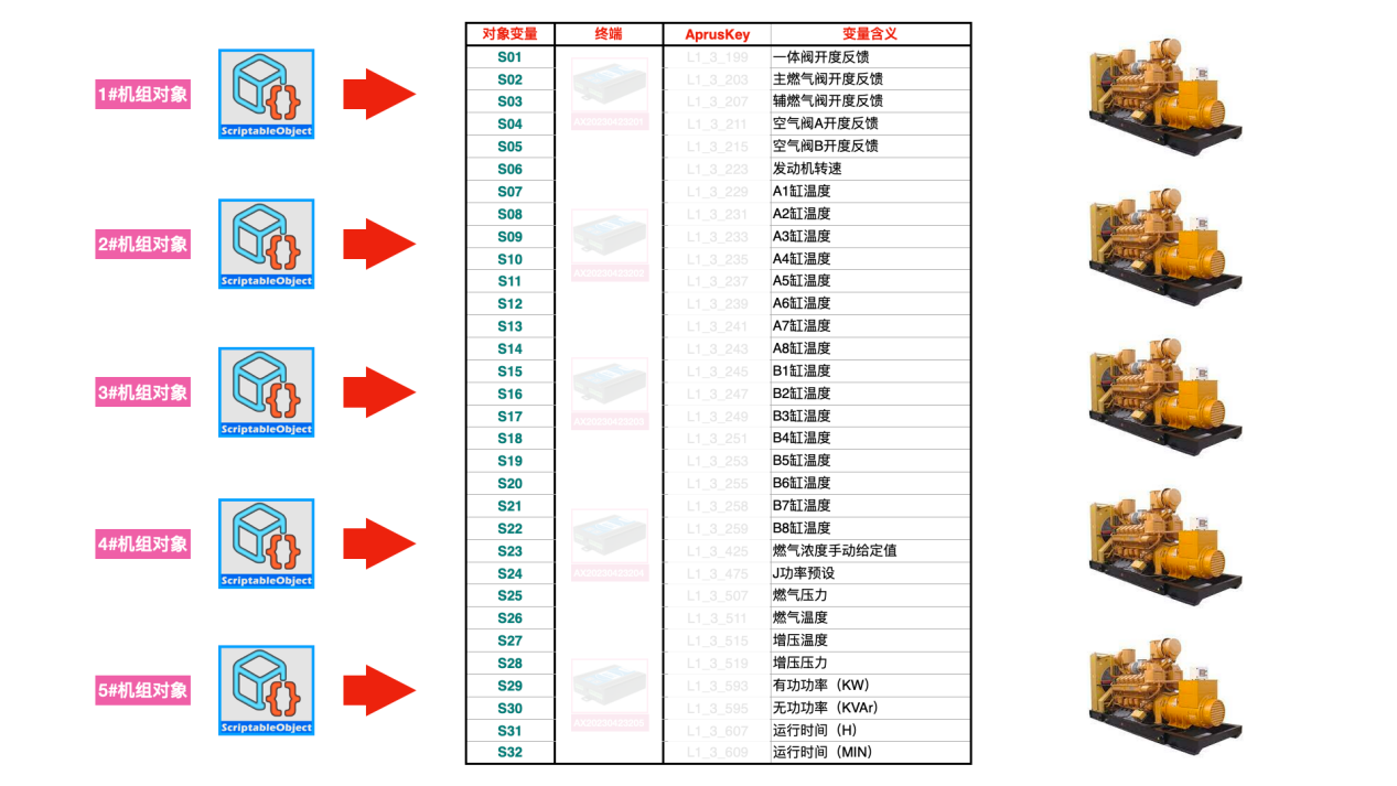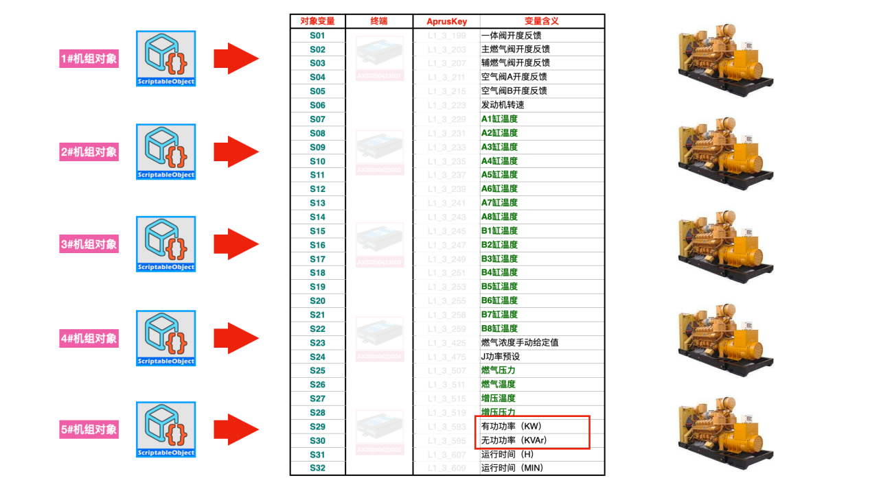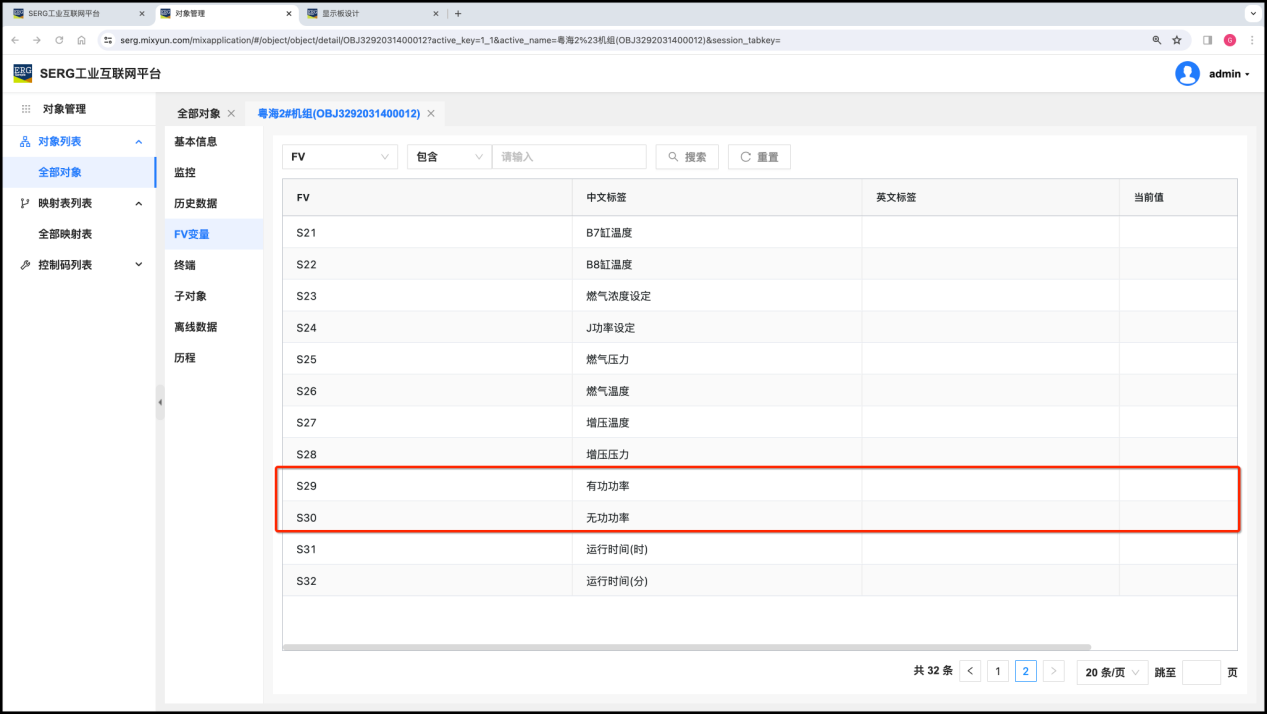在动手设计显示板之前,还需要看一下,这个对象都有哪些FV变量。这是“佳华1#机组”对象的FV变量情况: