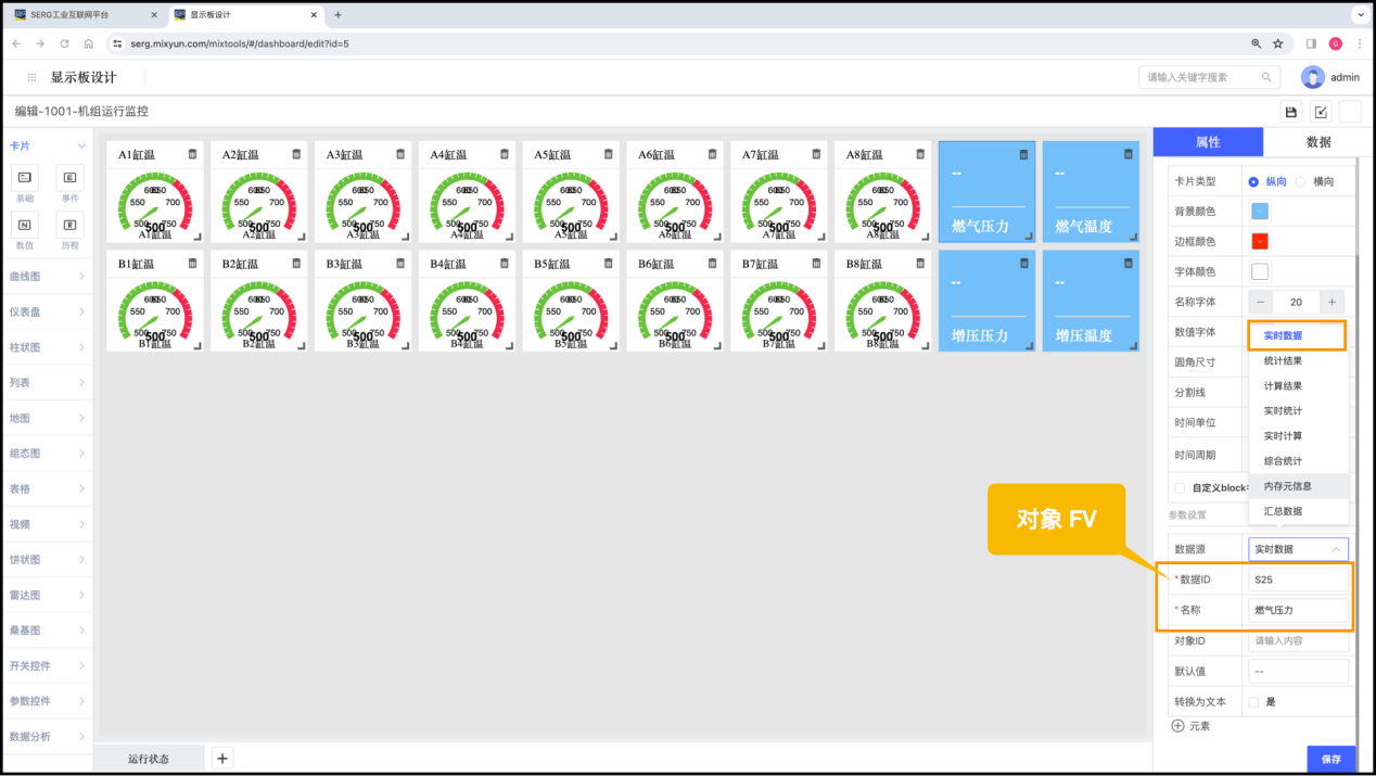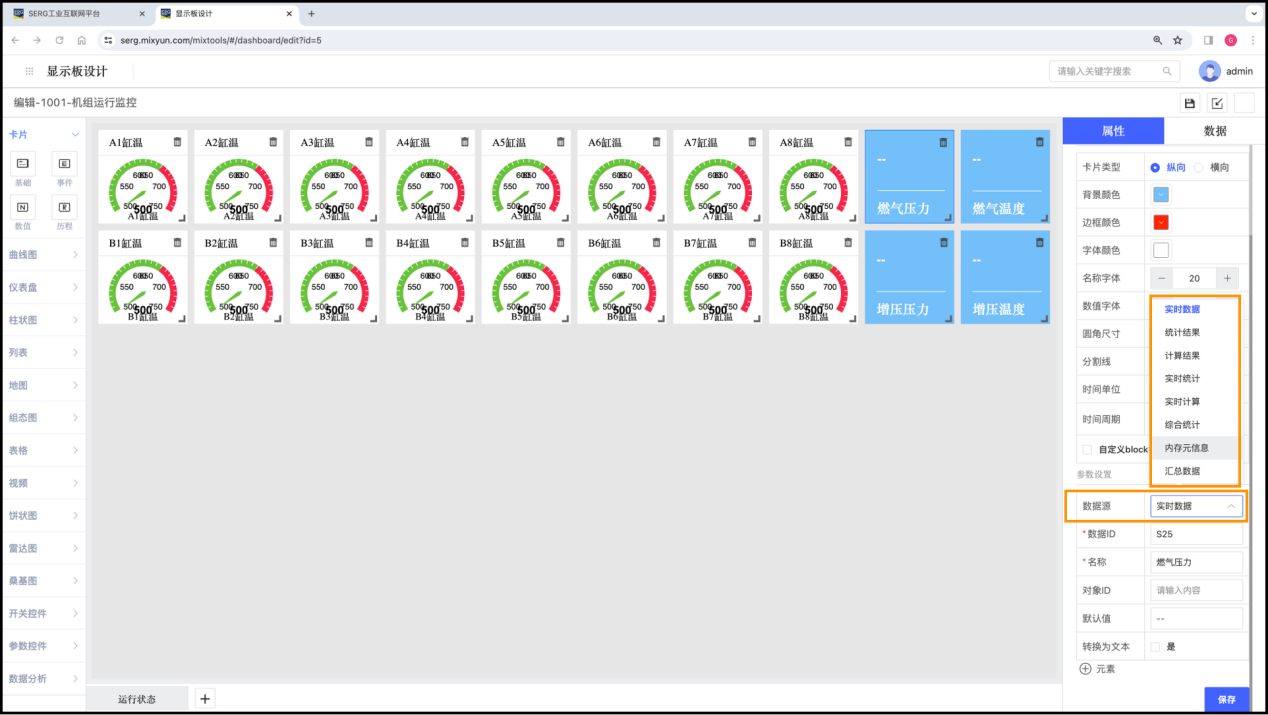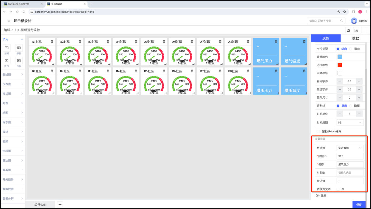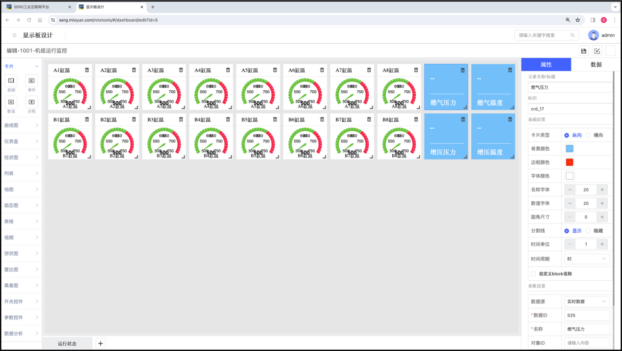 现在打算把燃气压力、燃气温度、增压压力、增压温度数据放上去,展现形式用基础数据卡片就可以了。