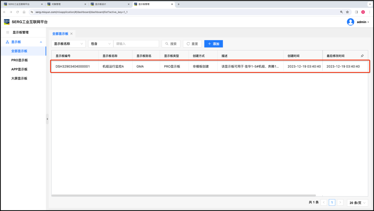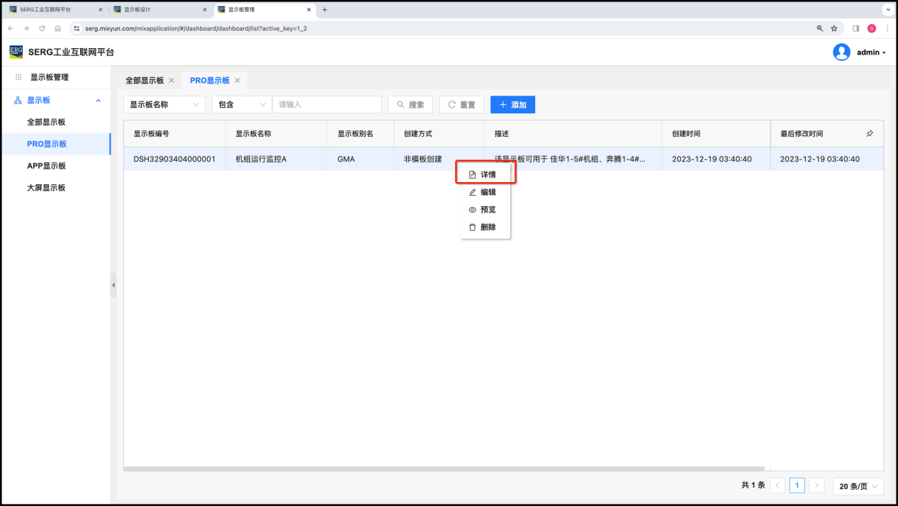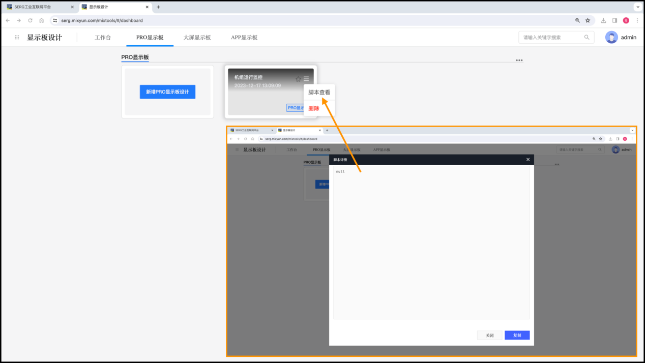 可以看到,事实上,一个对象可以关联3个显示板,PRO显示板、大屏显示板和App显示板。