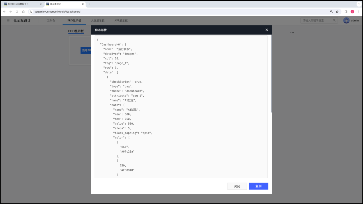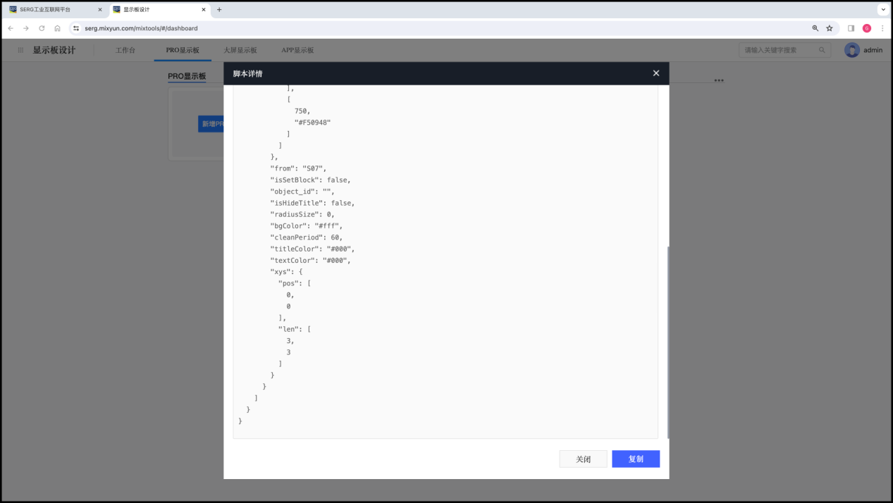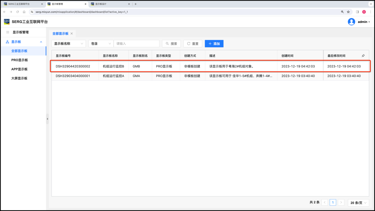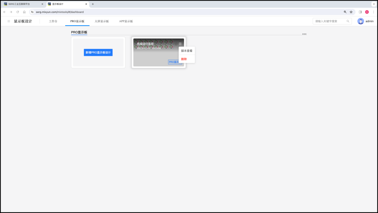 可以看到,事实上,一个对象可以关联3个显示板,PRO显示板、大屏显示板和App显示板。