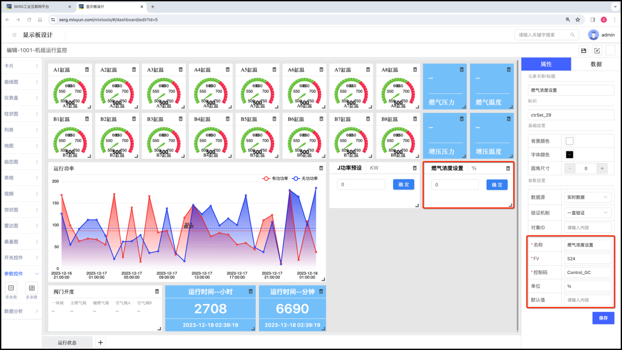 确定保存后,同样可以在对象详情–监控中,看到粤海2#机组对象所对应的显示板。