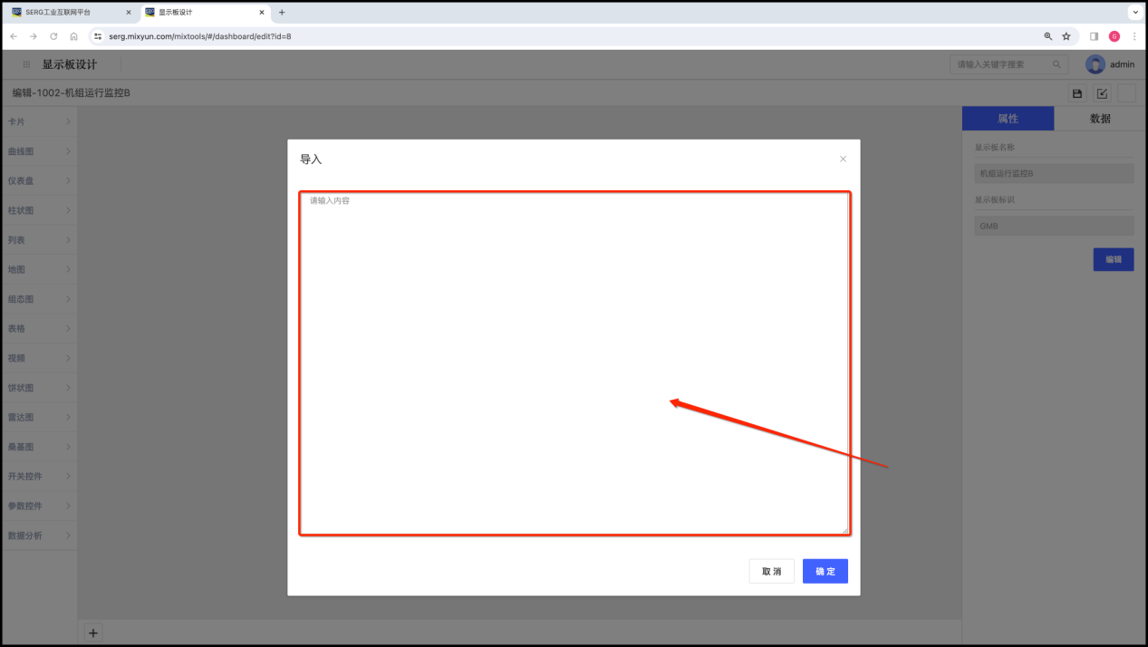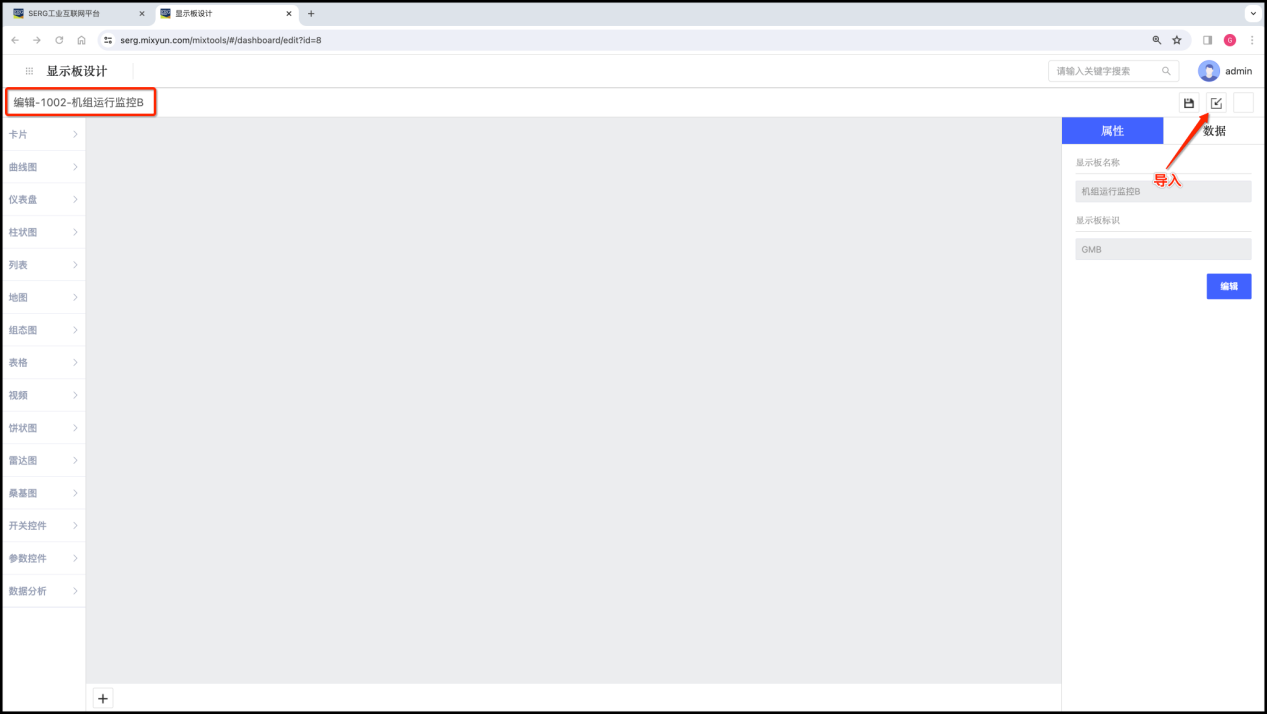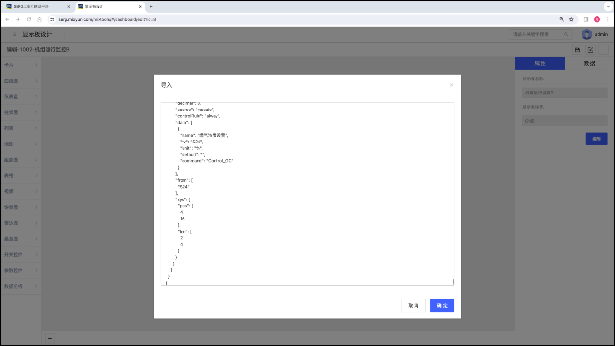 把 “机组运行监控” 显示板设计脚本,导入到“机组运行监控B” 显示板设计中: