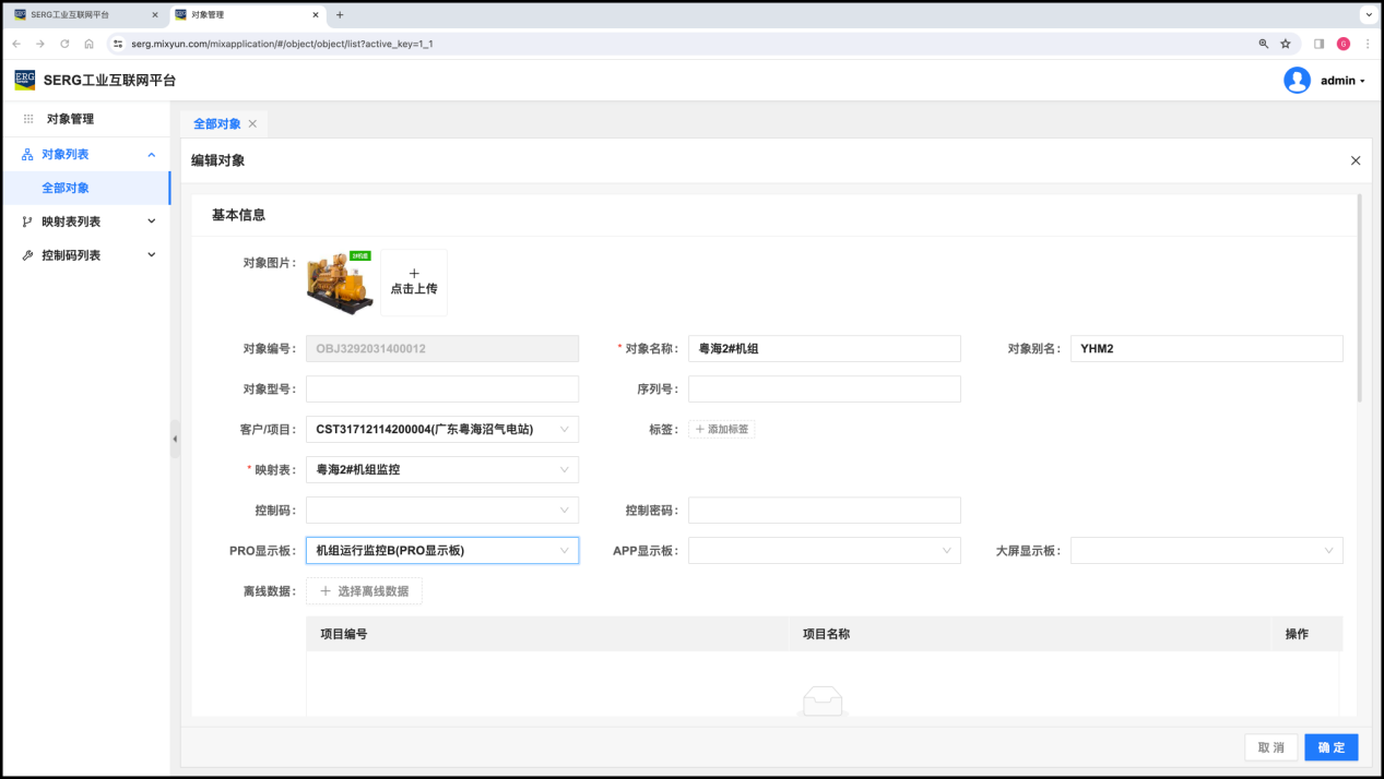 还要在 “对象管理”中,把“粤海2#机组”对象跟这个显示板做好关联:
