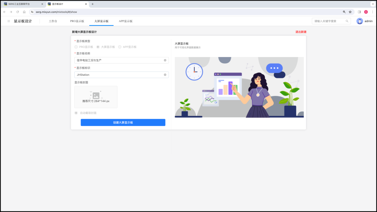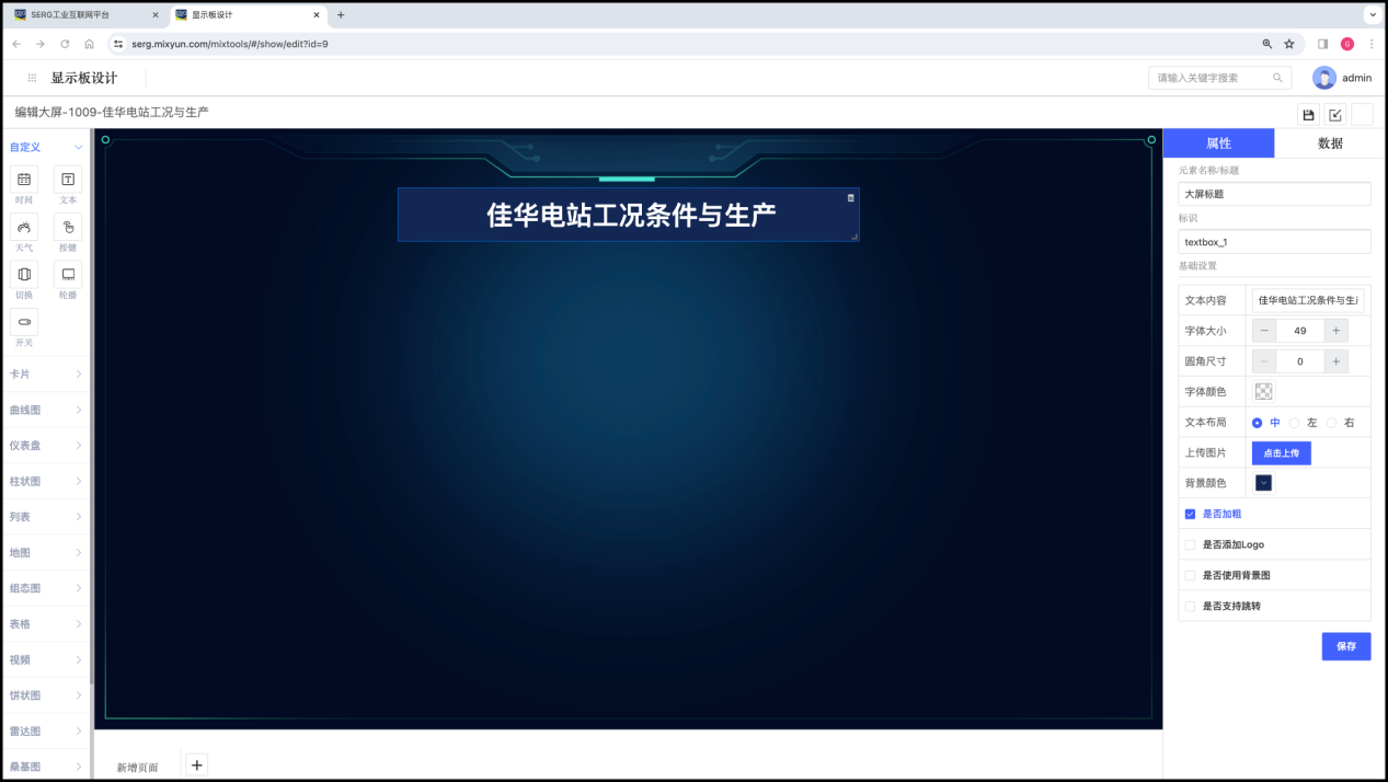 大屏显示板的设计就是这样。同样,还是要在“显示板管理”应用中,把这个显示板创建好。