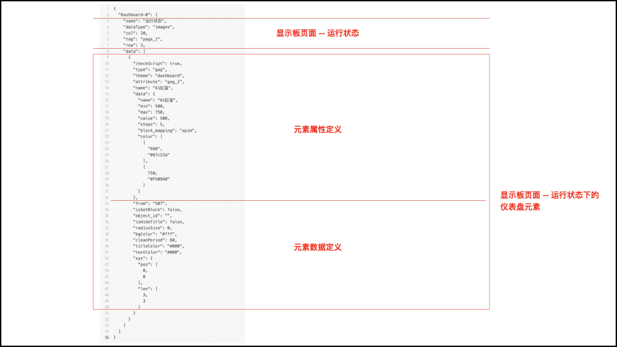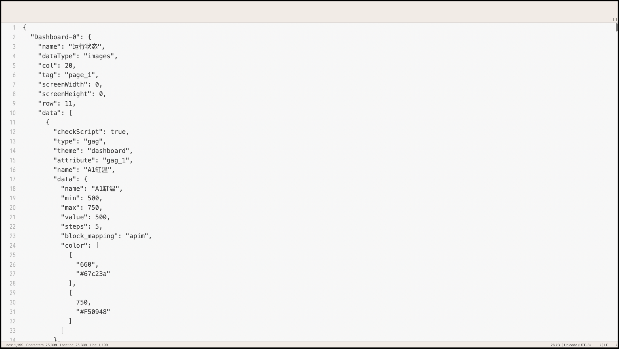 虽然这个显示板,只有一个显示板页面,这个显示板页面也只有一个设计元素,但这个显示板的脚本看上去也不是很简单,其实这些都是属性项的属性值而已。