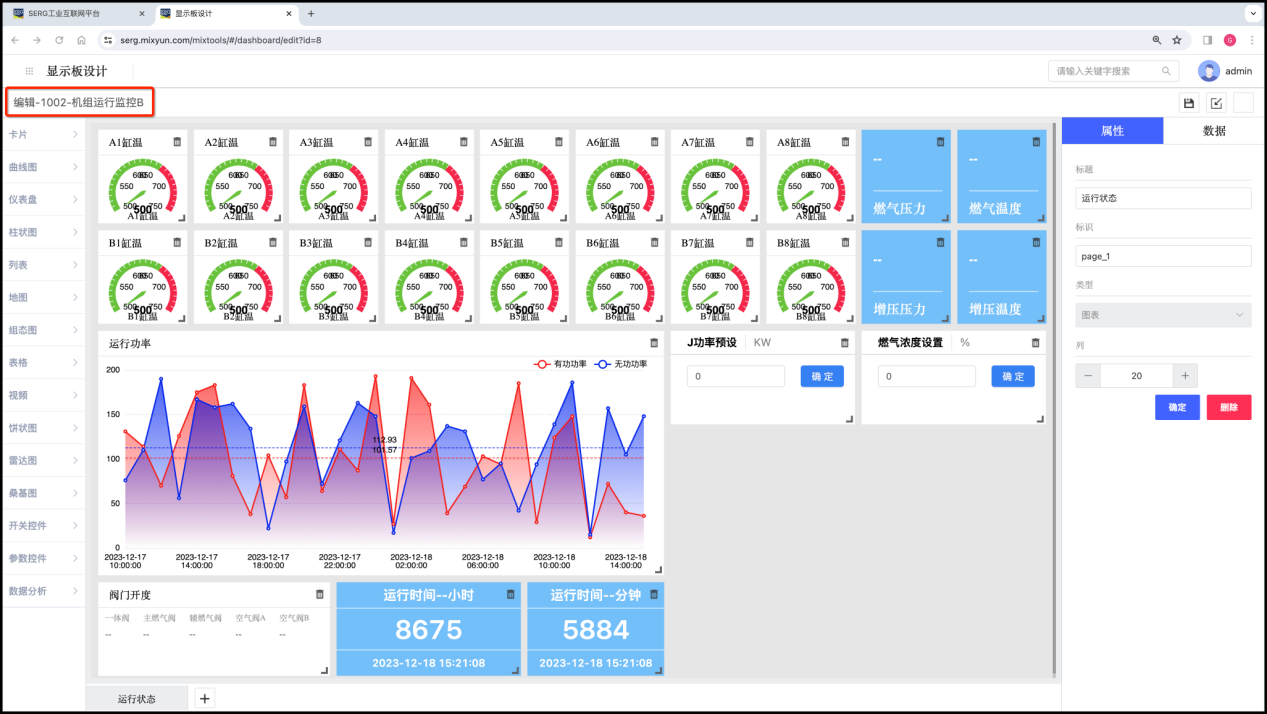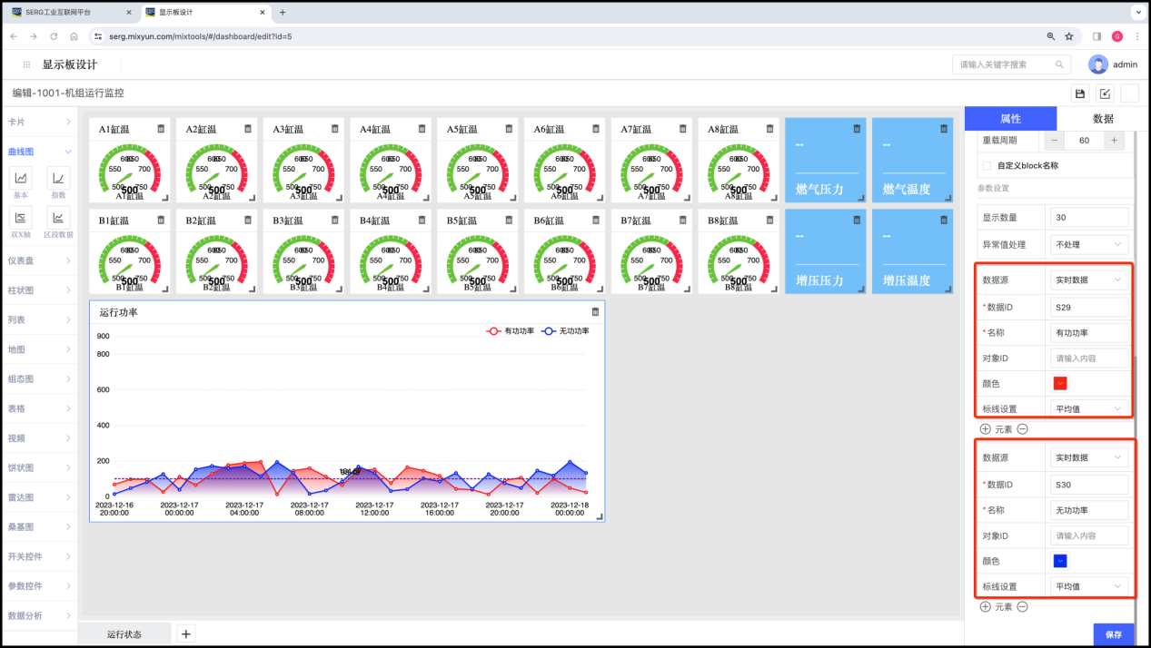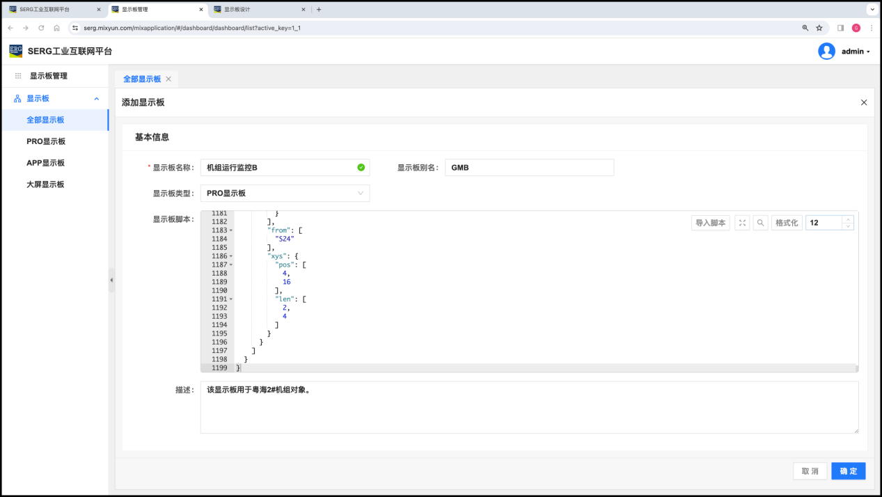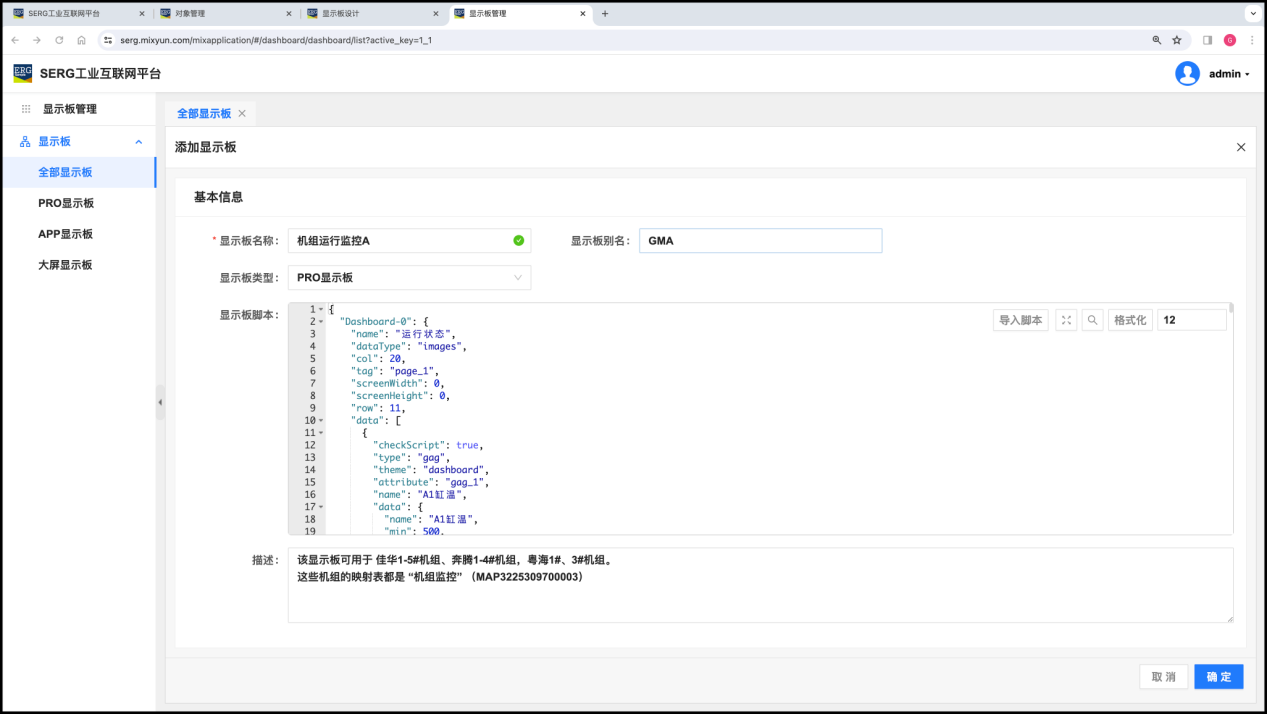 同样,我们还需要在“显示板管理”应用中,把“机组运行监控B”显示板创建好。
