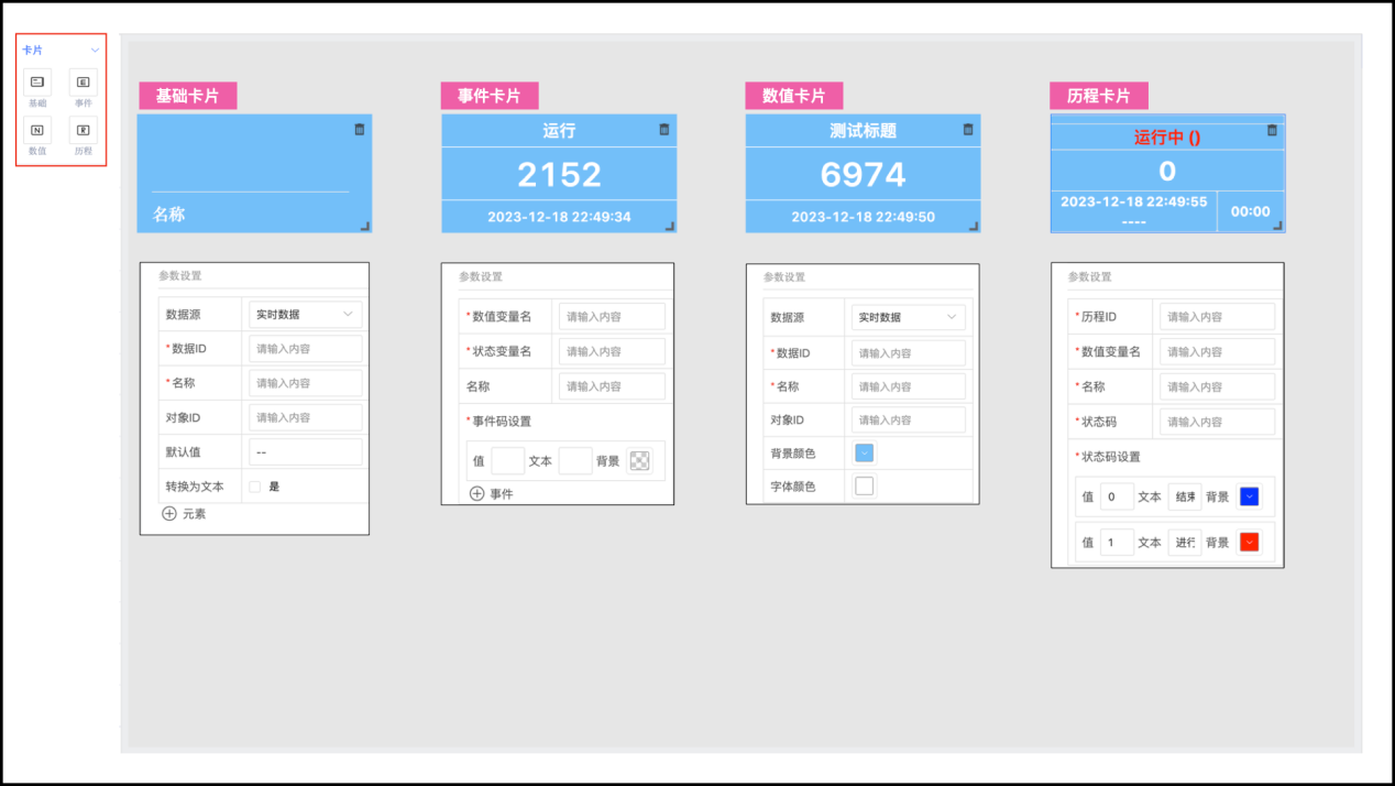 数值卡片多用于针对某种特定重要的数值,比如,设备累计运算时间,等等。历程卡片。